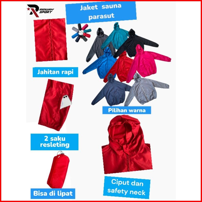 Jaket Sauna Olahraga Running Joging Lari Gym Parasut Pria Wanita Dewasa Polos Simple Hoodie Murah