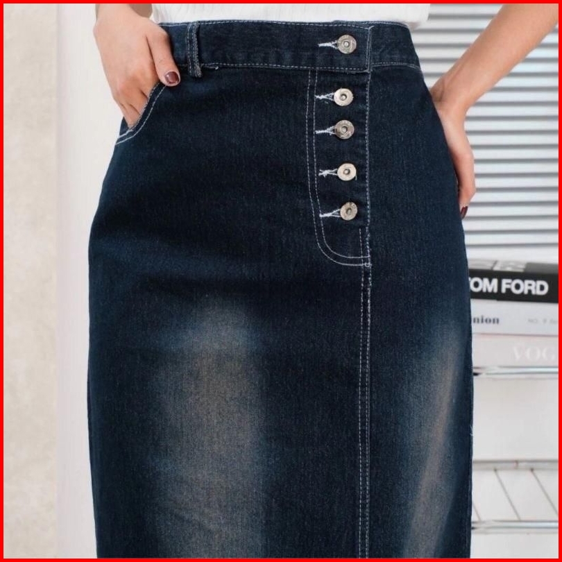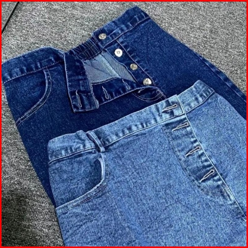 Rb Fashion House - Rok Jeans Highwaist Belah Samping Korean Style A Line Rebecca Skirt Panjang