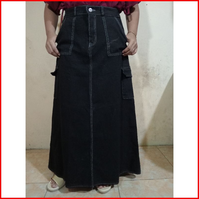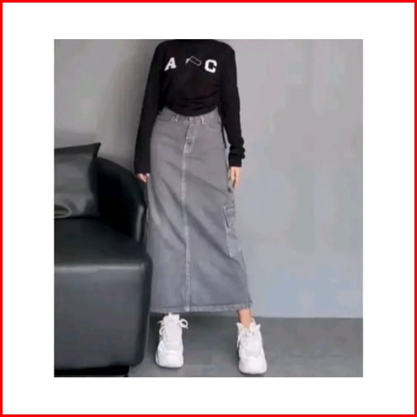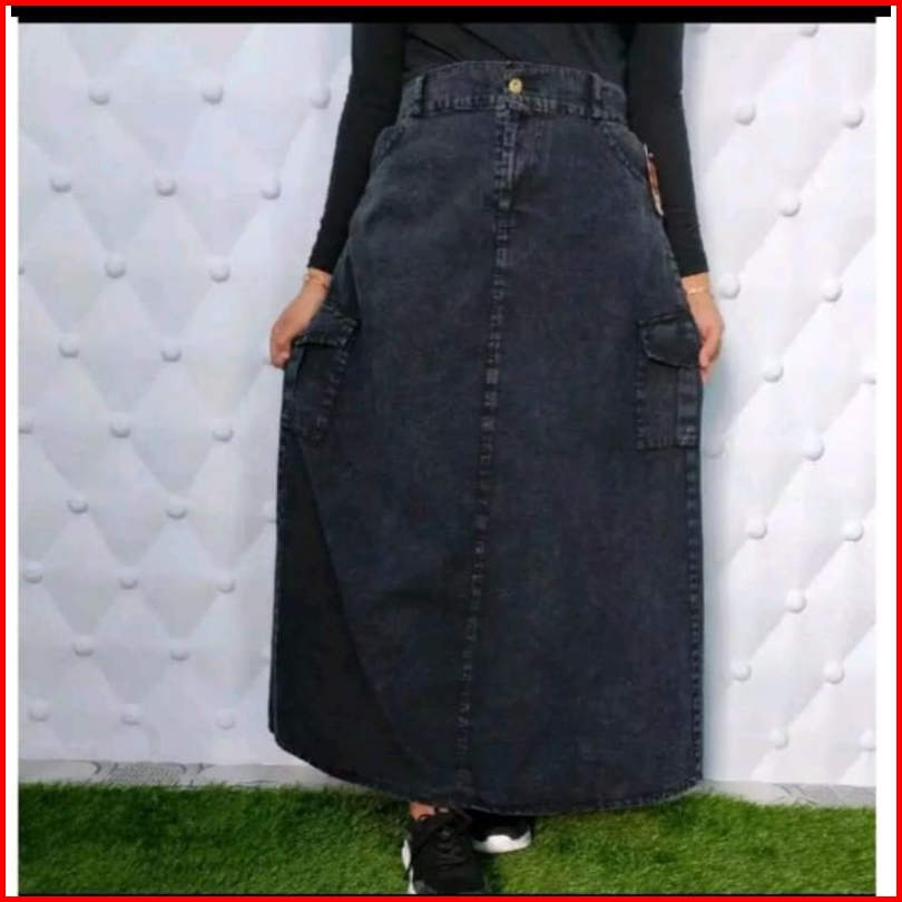 Rok Cargo Jeans Highwaist Wanita Kekinian