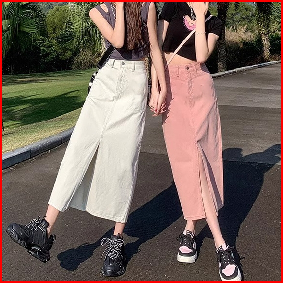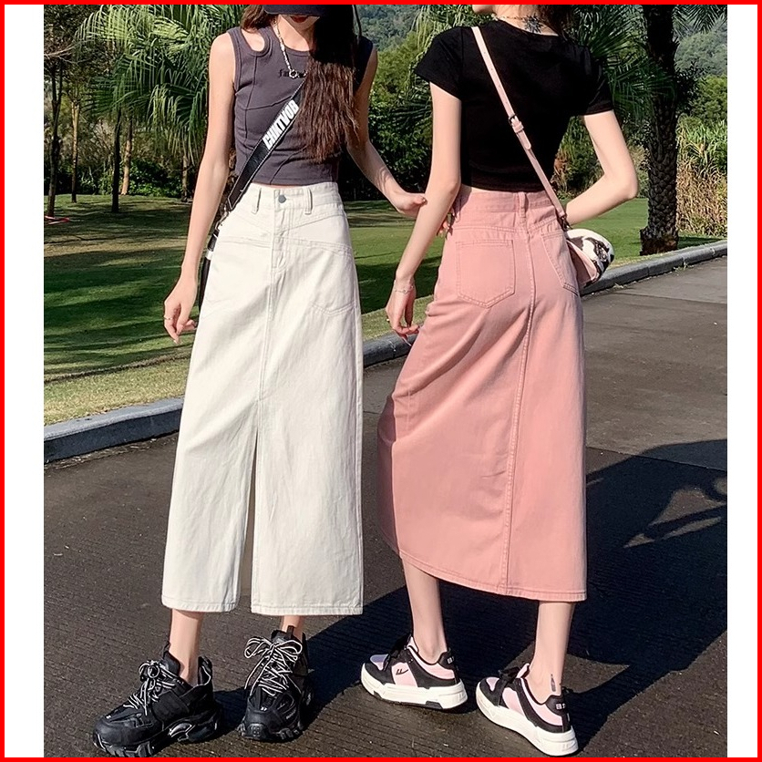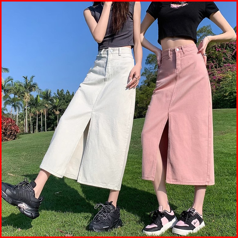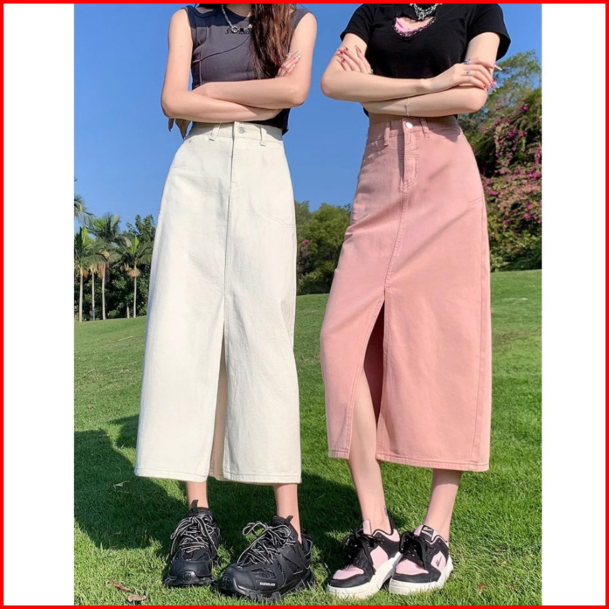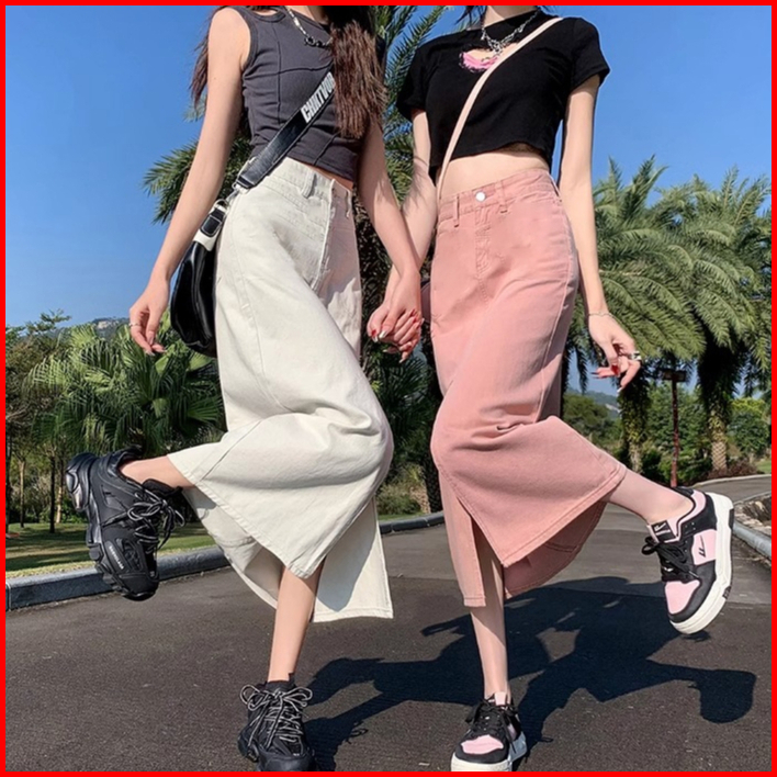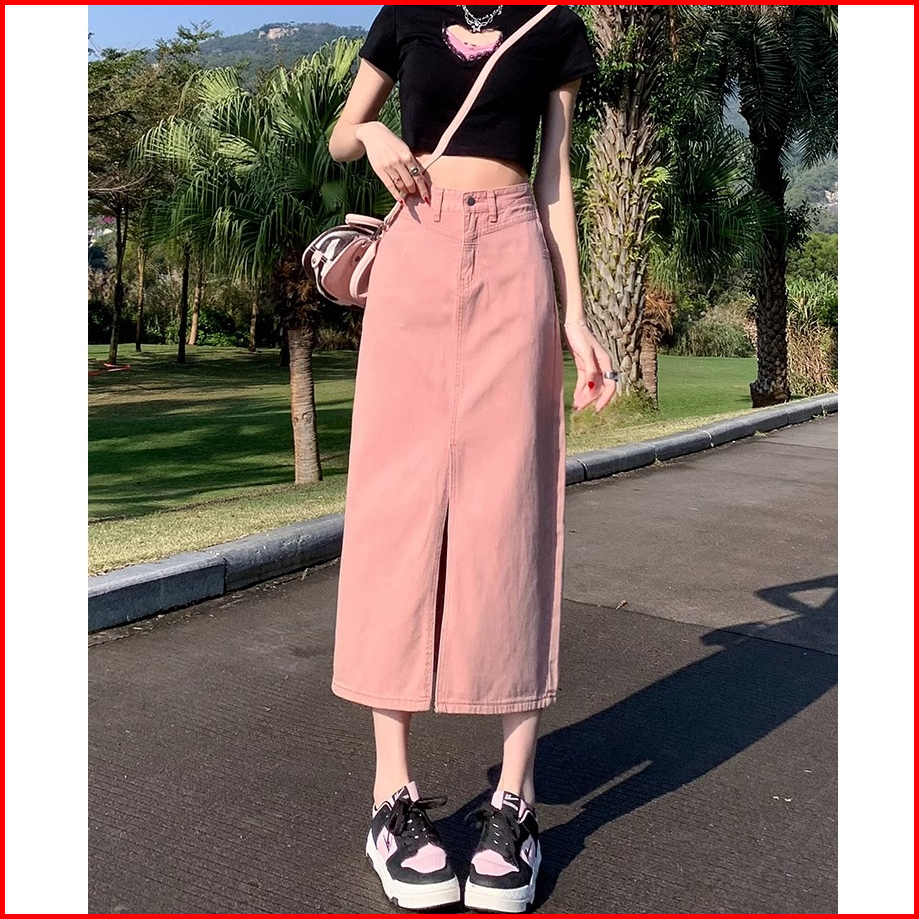 Emily Rok-korean Jeans Rok New Fashion Kasual Highwaist Denim Rok Pink Krem