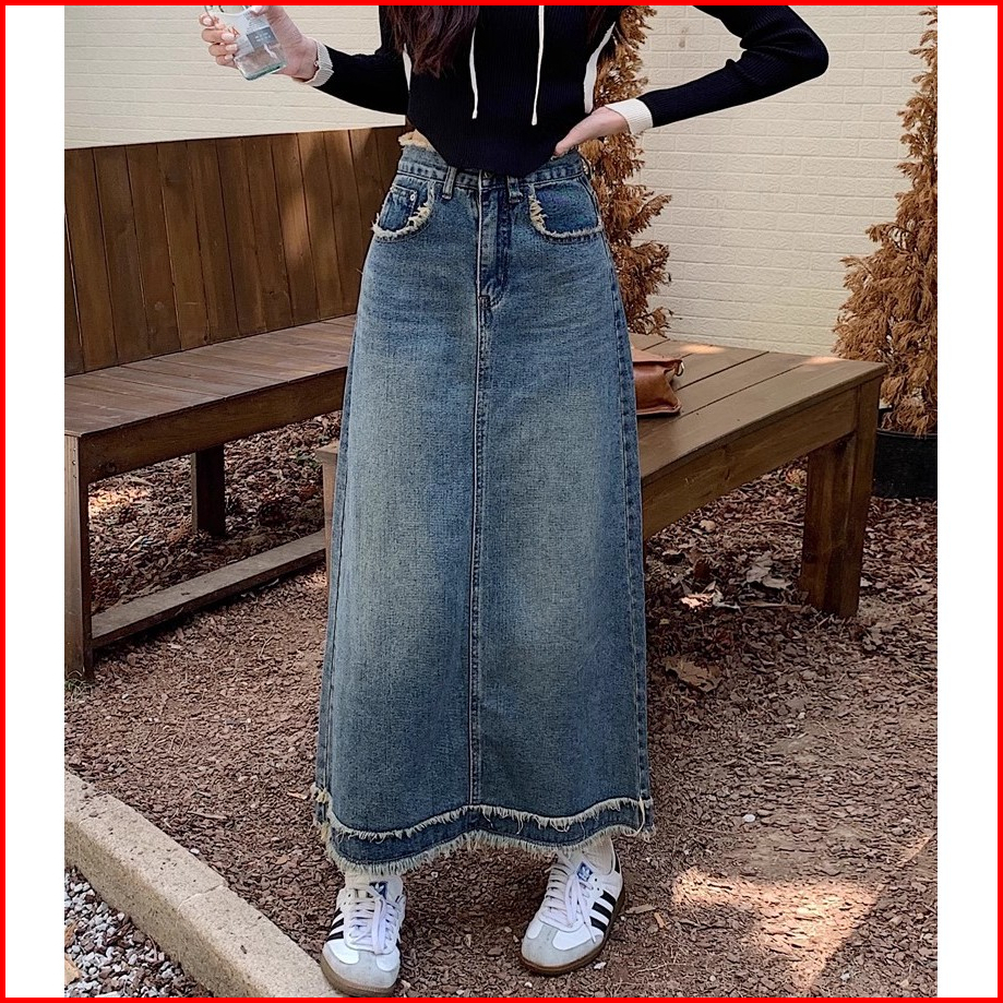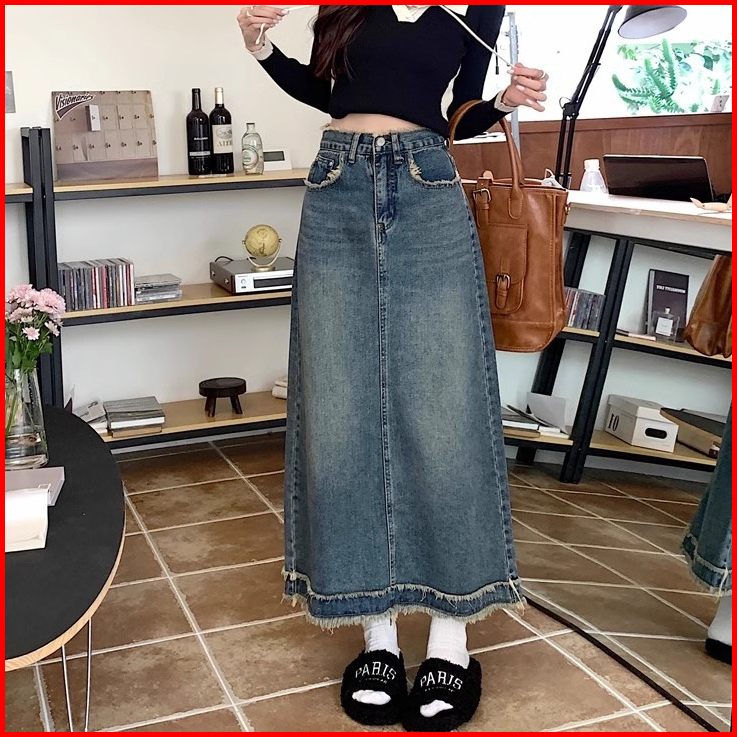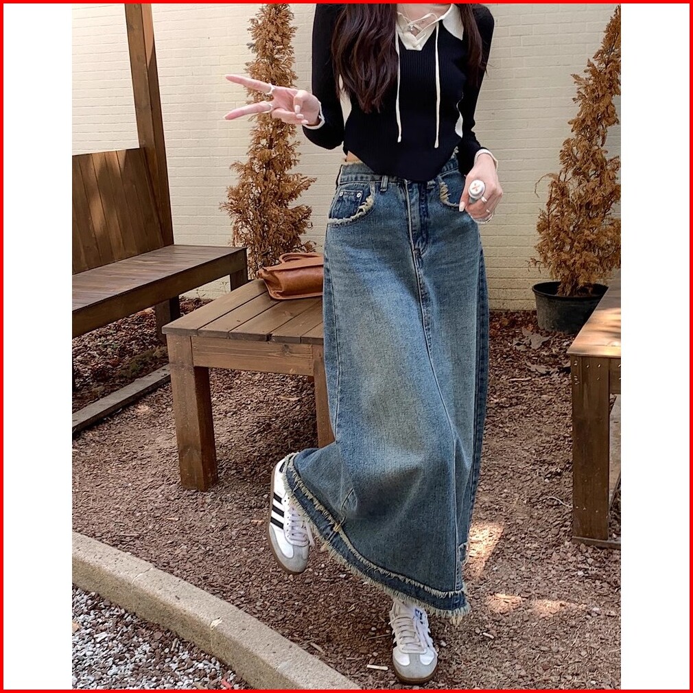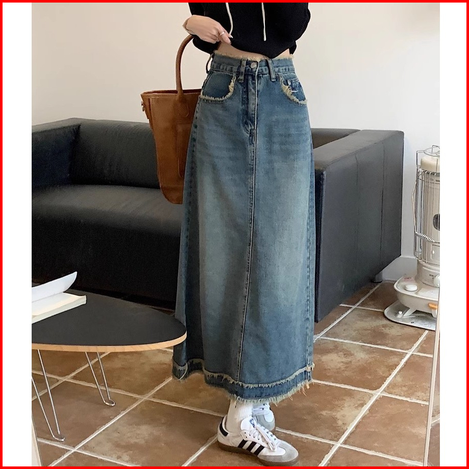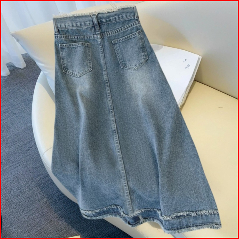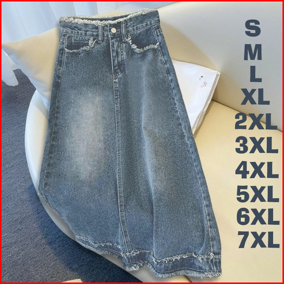 Meissi.idrok Jeans Bigsize Jumbo Rok Jeans Panjang Wanita Skirt Denim Midi A Line Highwaist Rok Jeans Korean Style Outfi
