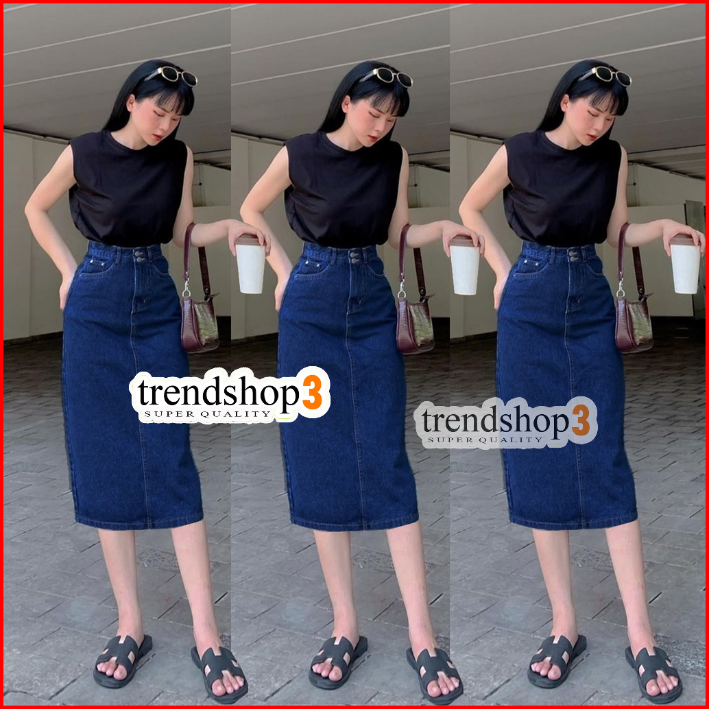 Rok Jeans Premium Rok Jeans High Waist Rok Span Panjang 7 9