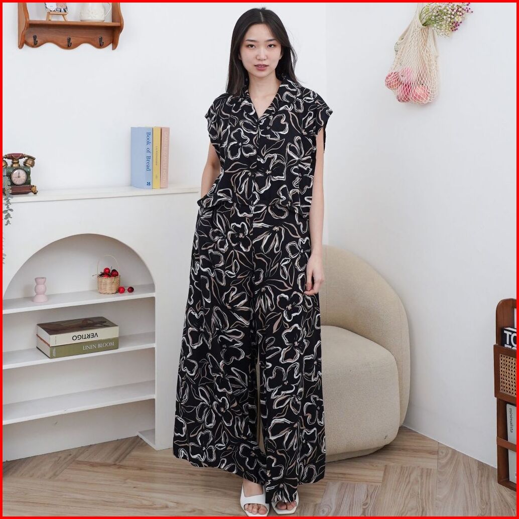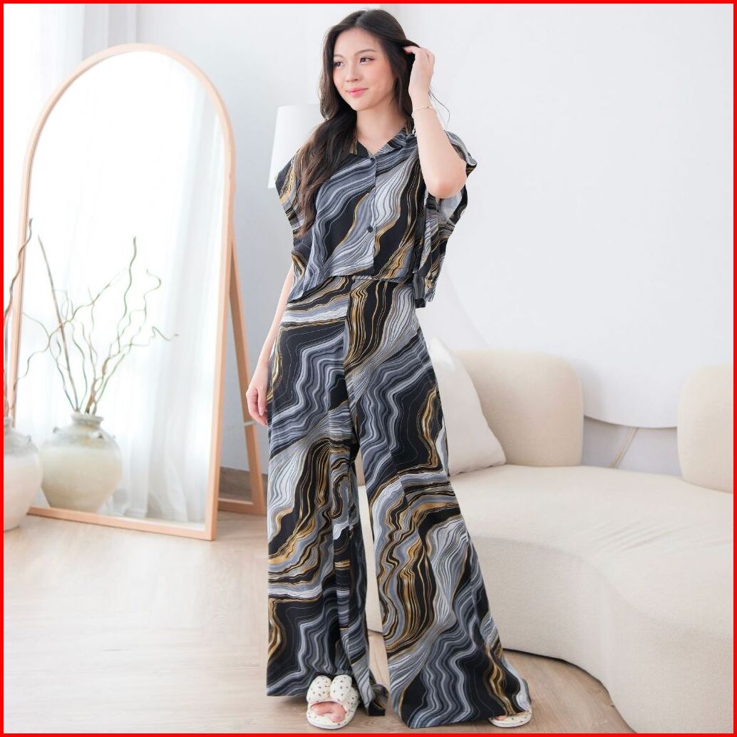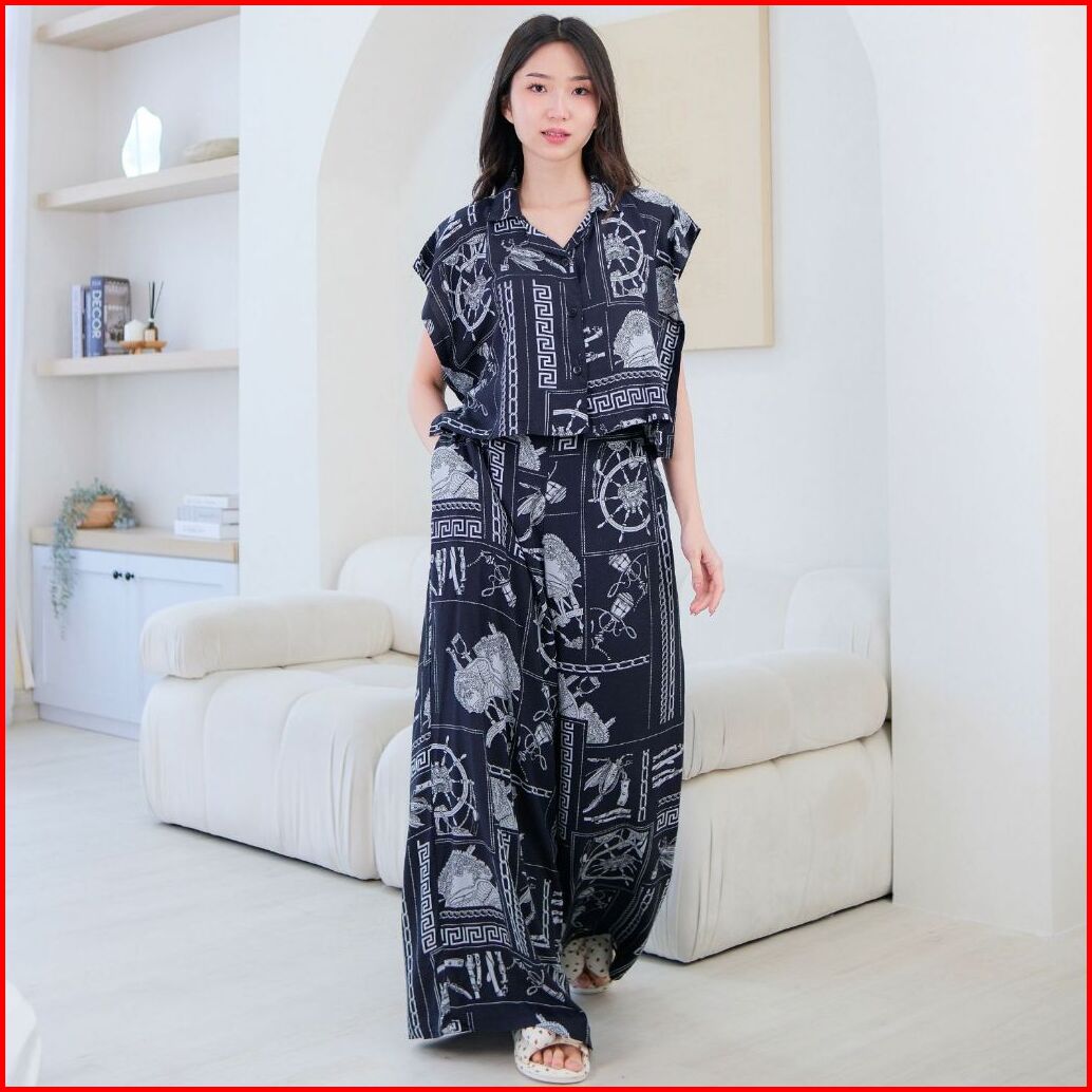Aurae - Jemima One Set Crop Daily Wear Babydoll Rayon Viscose Motif Busui