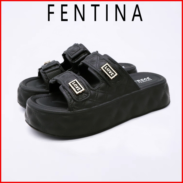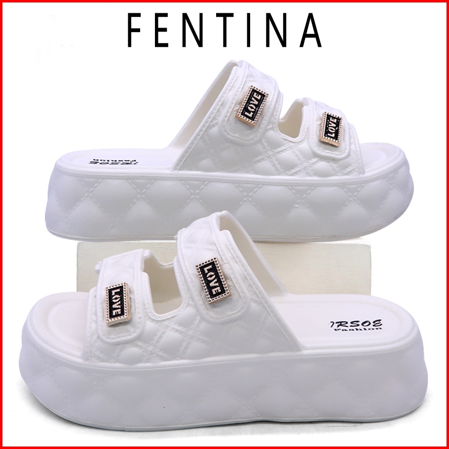 Fentina Sandal Wanita Kekinian Sandal Jelly Slop Wedges Wanita Korea Dewasa Tinggi Sandal Fuji