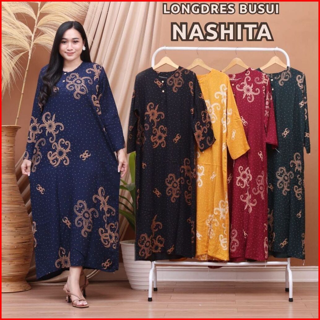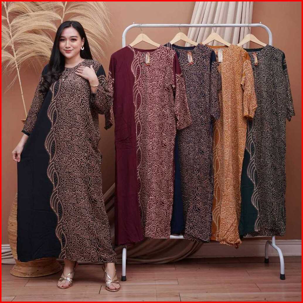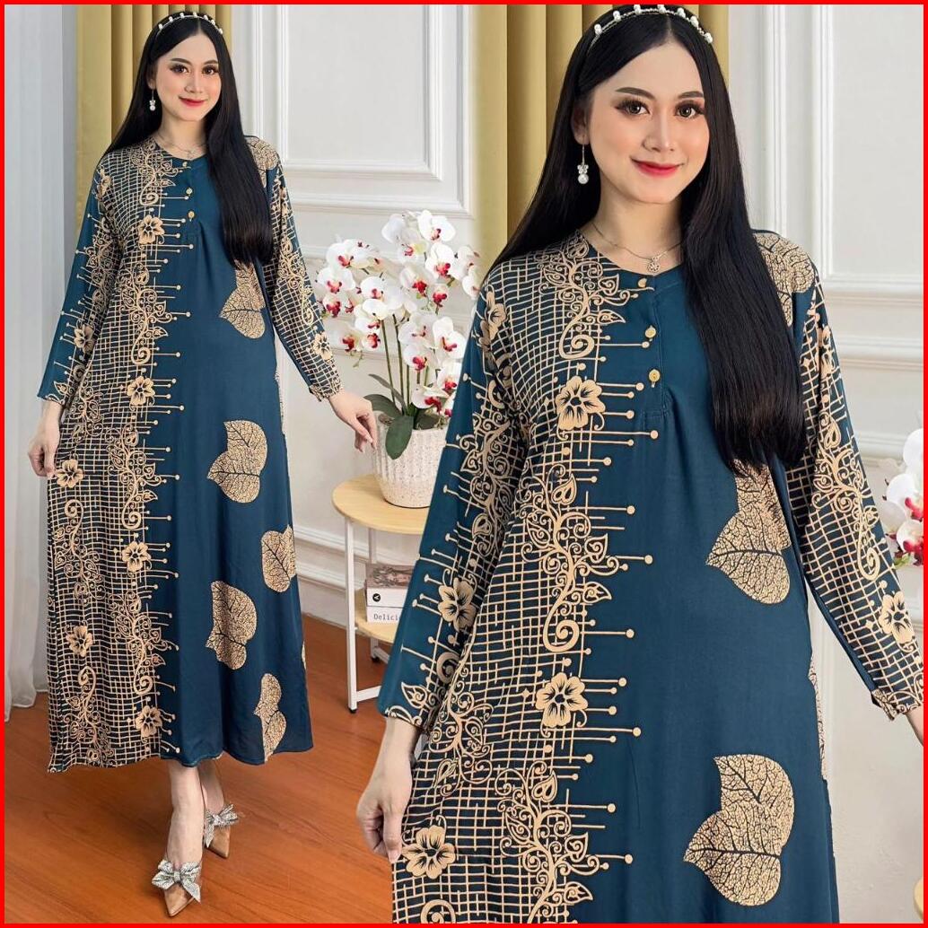 Daster Panjang Batik Kancing Depan Rayon Adem Halus Murah Meriah Lengan Panjang