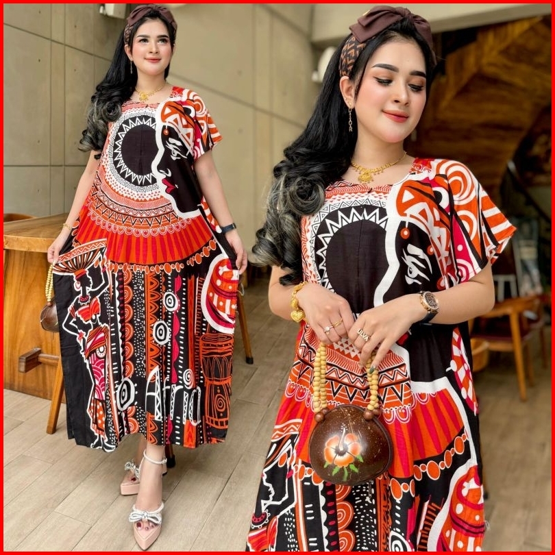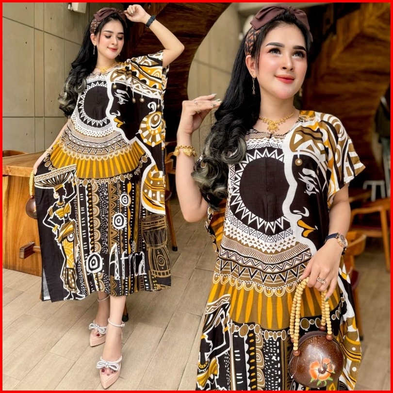 Daster Lowo Jumbo Busui Desy Afrika Resliting Bahan Rayon Dress Santung Resleting Depan Busui