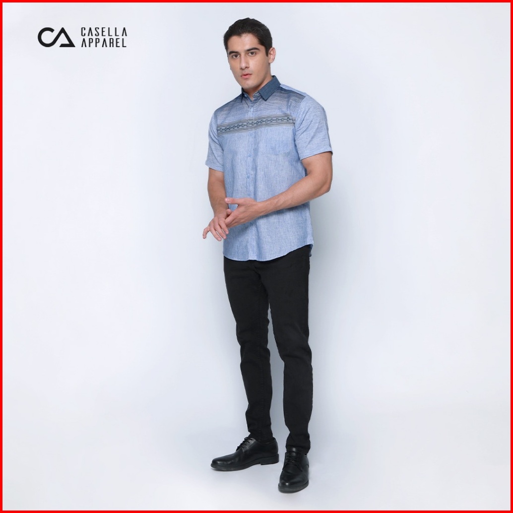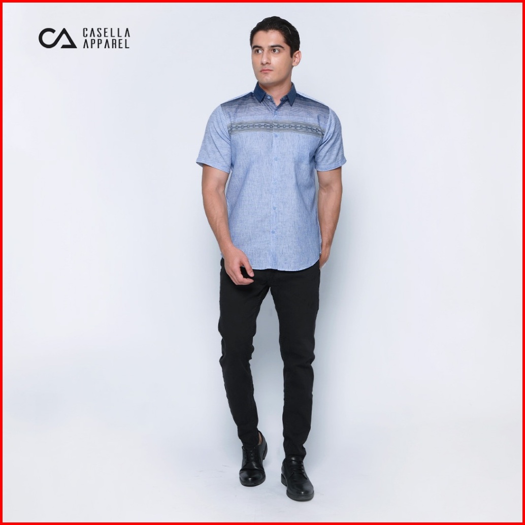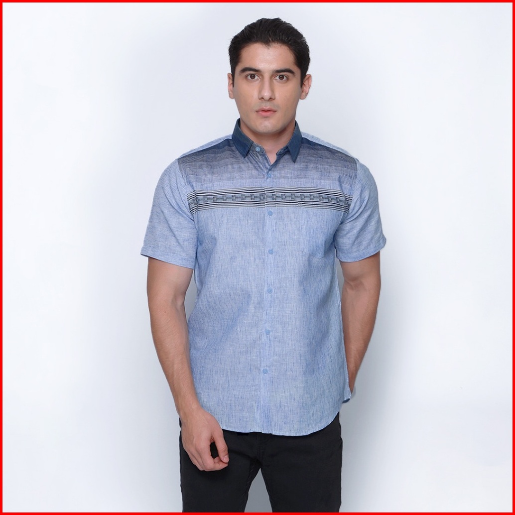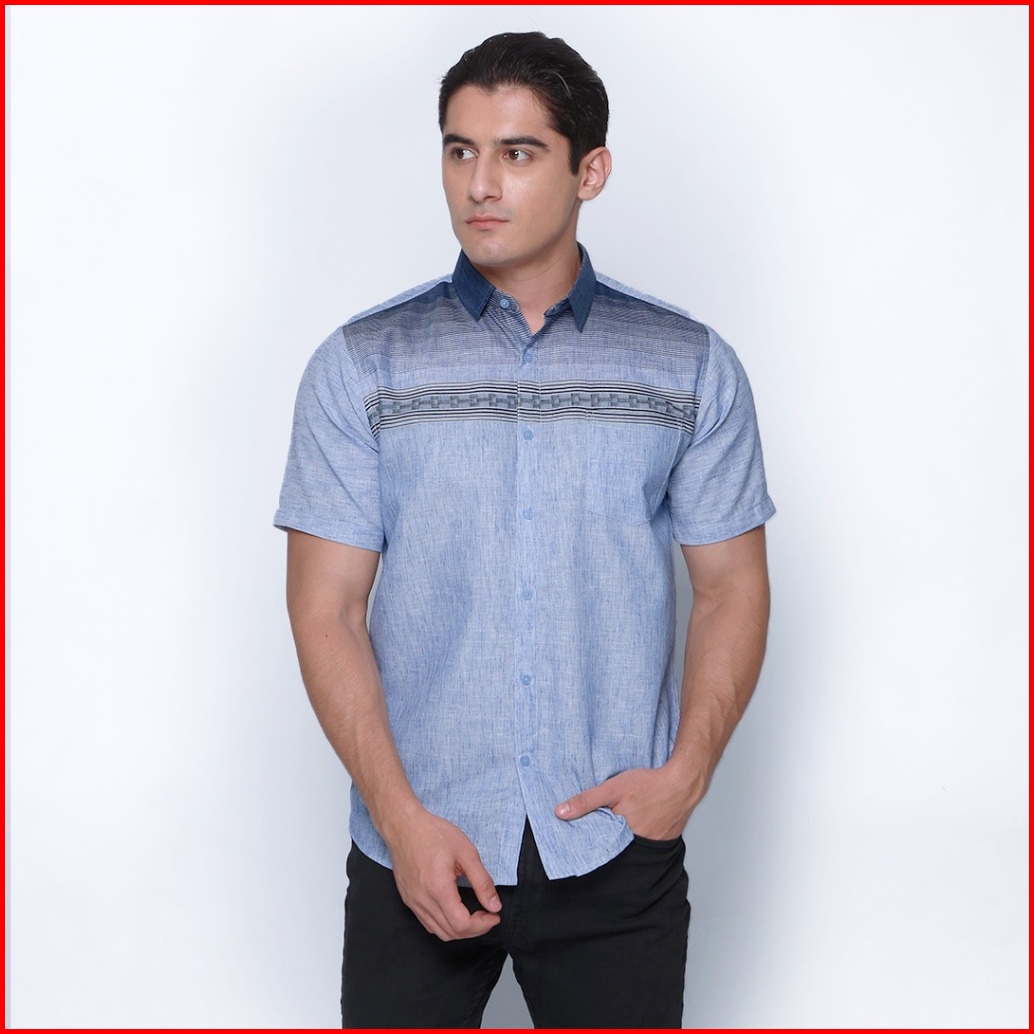Simple Perfect Kemeja Pria Lengan Pendek Casual Kemeja Horizontal Henry