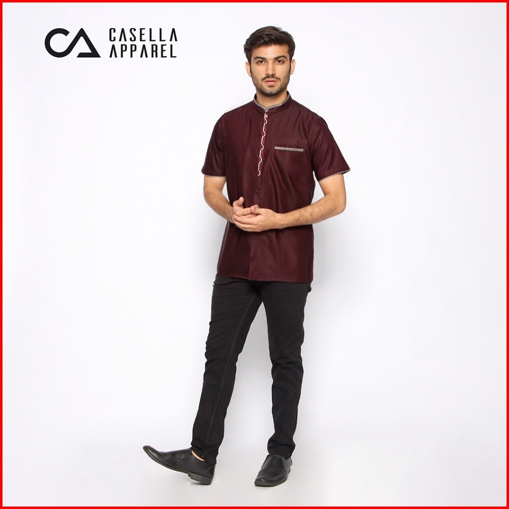 Casella Baju Koko Pria Lengan Pendek Baju Koko Nasser Embroidery