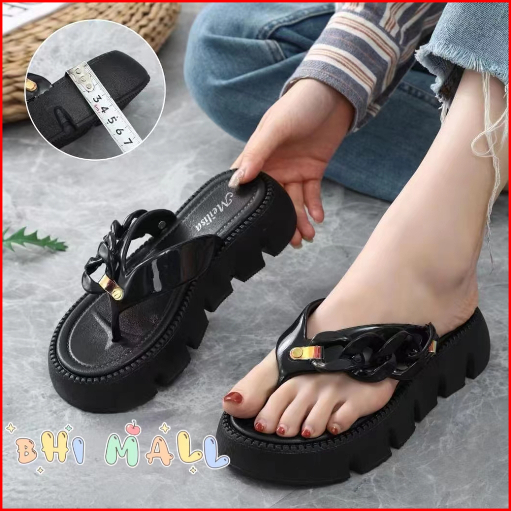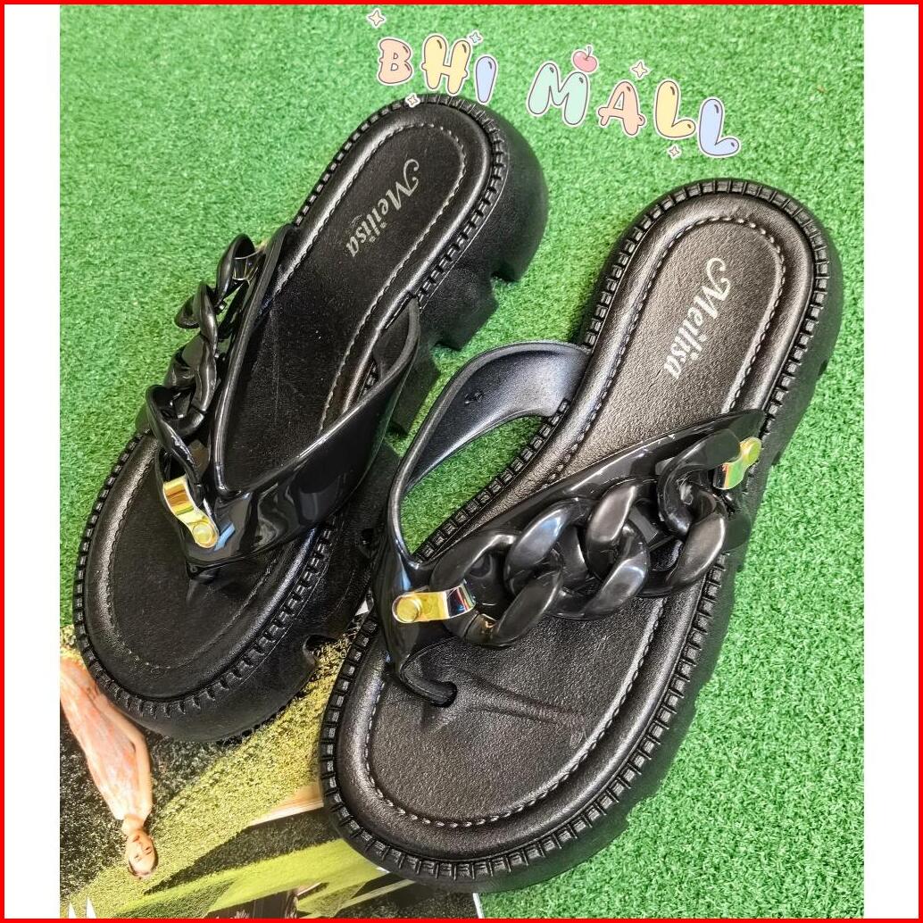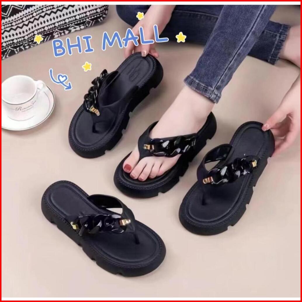 Sandal Jepit Wanita Import Rantai Bahan Karet Jelly Empuk Ringan Anti Slip Terbaru Kekinian 2024