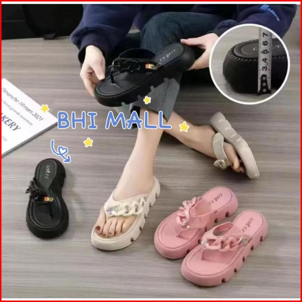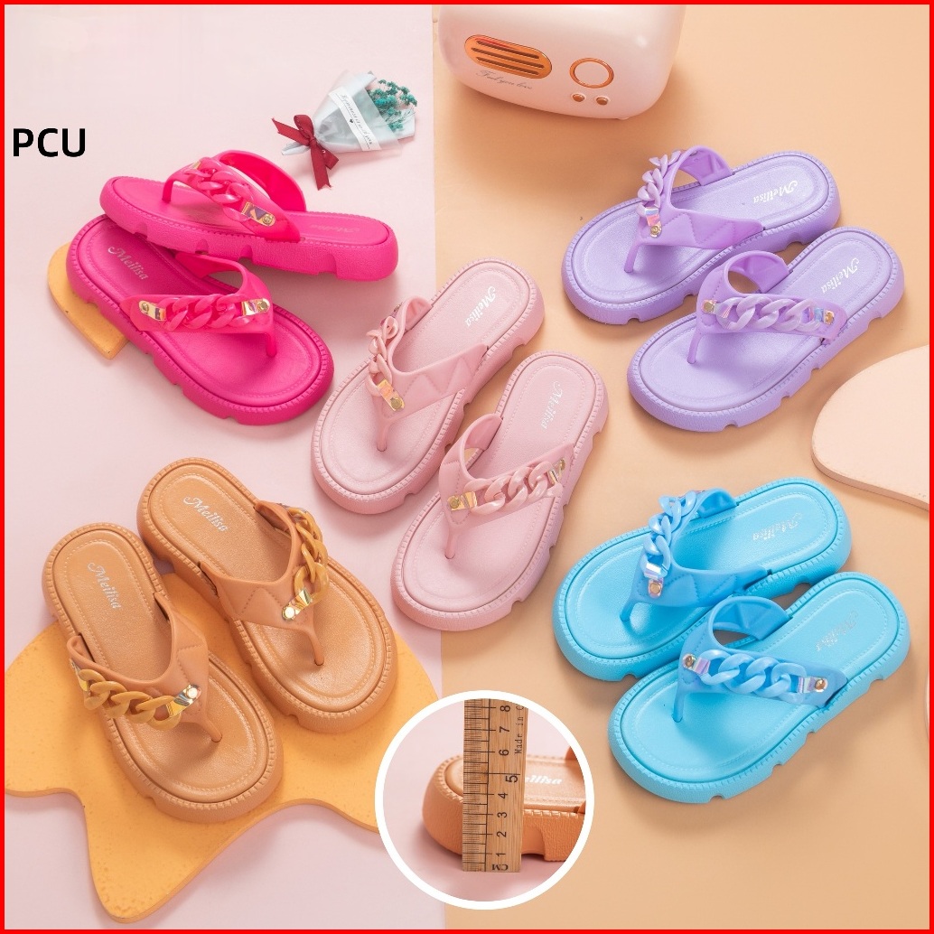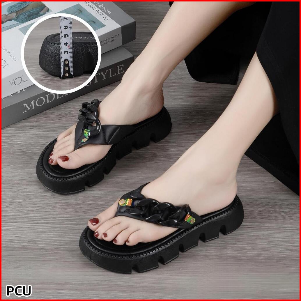 Sandal Jepit Wanita Import Rantai Bahan Karet Jelly Empuk Ringan Anti Slip Terbaru Kekinian 2024