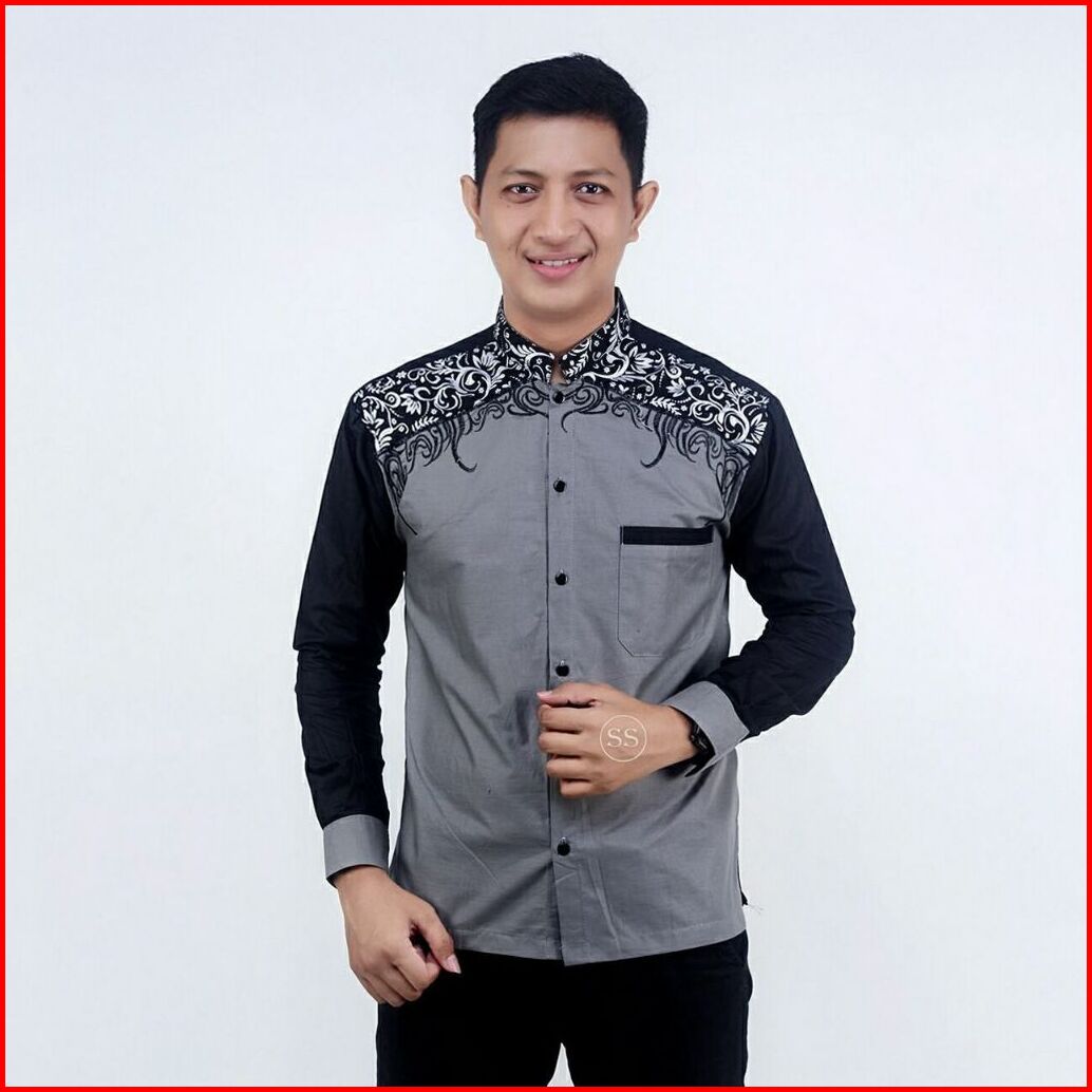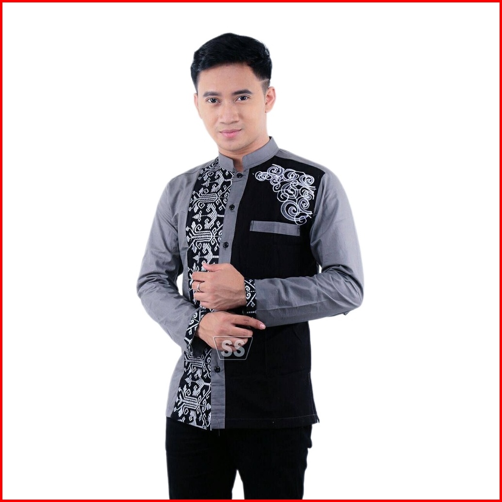 Baju Koko Pria Dewasa Lengan Panjang Motif Tri Sula