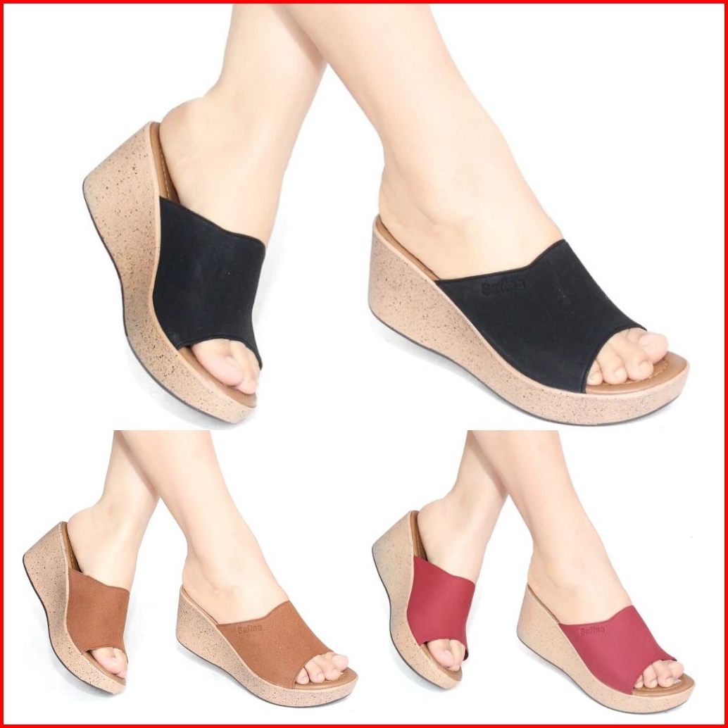 Sandal Wanita Wedges Sendal Cewek Selop Slop Heels Tinggi Kondangan Kekinian Terbaru Elegan 2025 W3b
