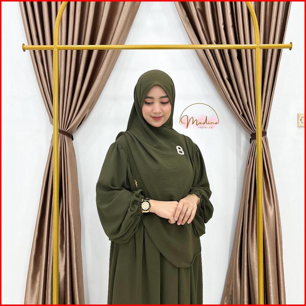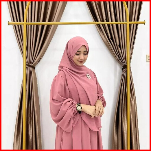 Gamis Set Hijab Pashmina Pasmina Oval Syari Syar I Crinkle Airflow Premium
