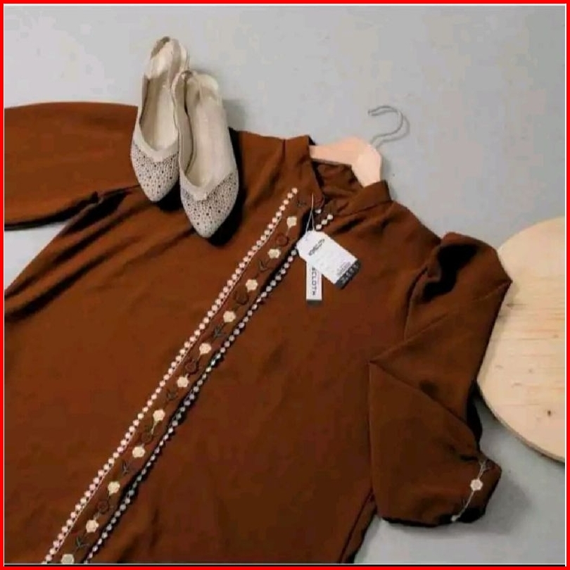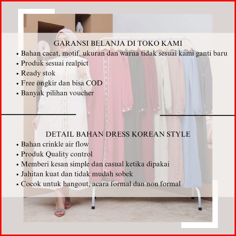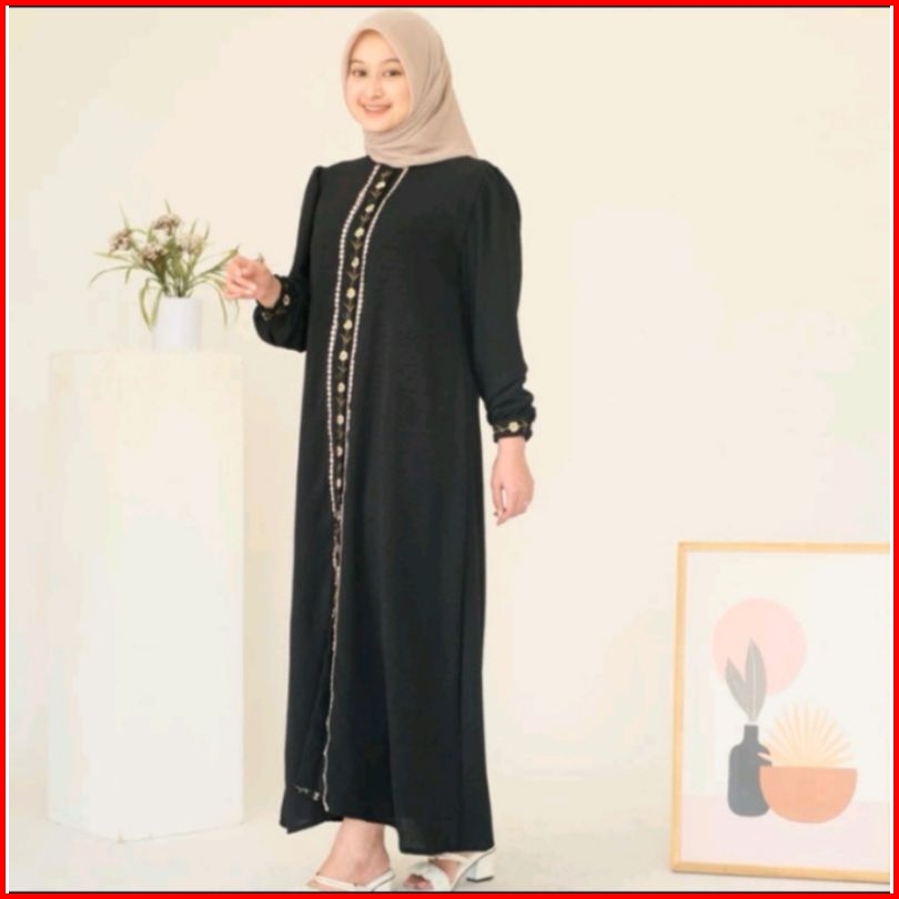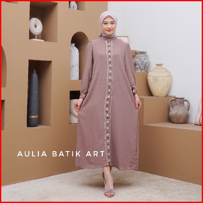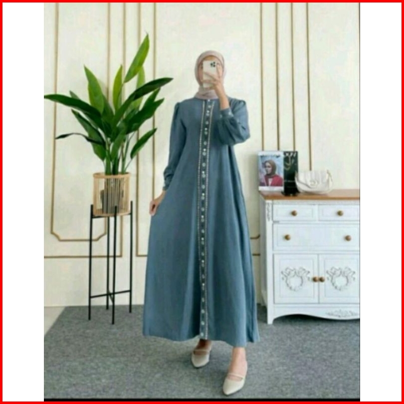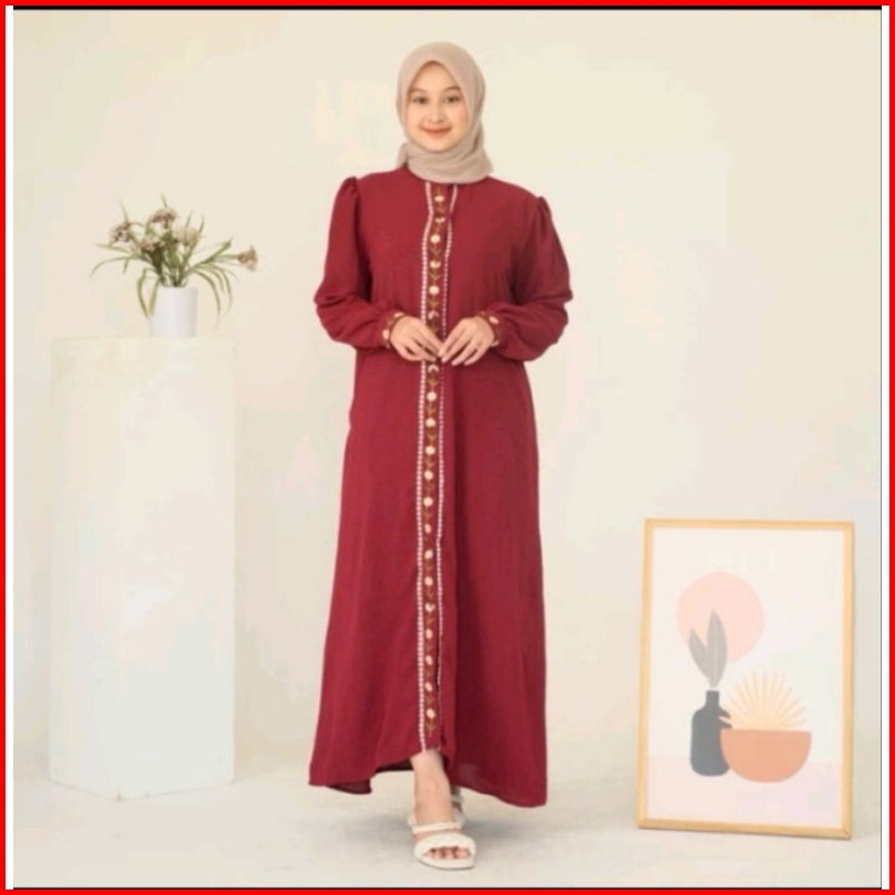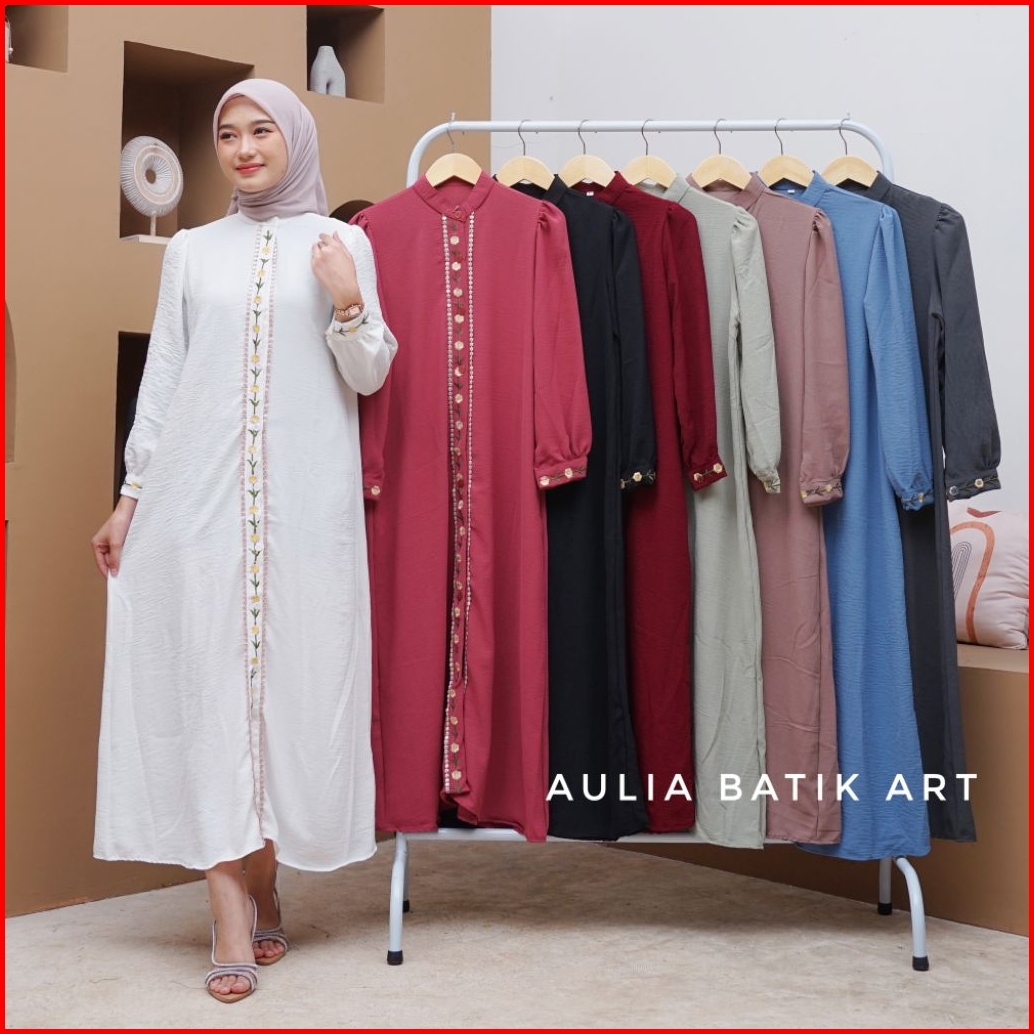 Tania Dress - Dress Wanita Crinkle Lebaran - Dress Busui Kancing Bordir Lengan Panjang - Gamis Muslim Terbaru