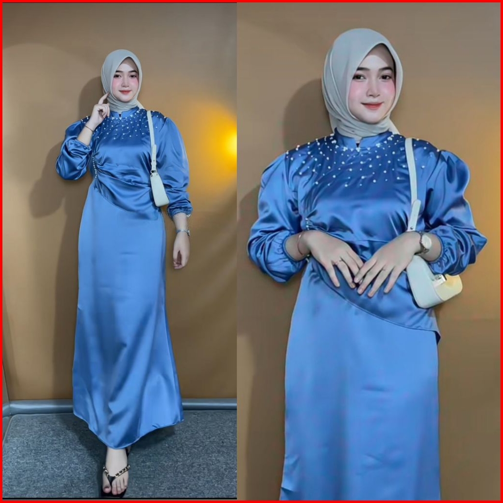 Vina Dress Satin Silk Premium Dress Kondangan Bridesmaid Wisuda Pesta Muslim Slim Body Fit Viral Lebaran Mewah Payet