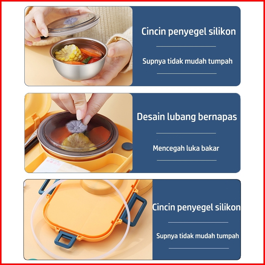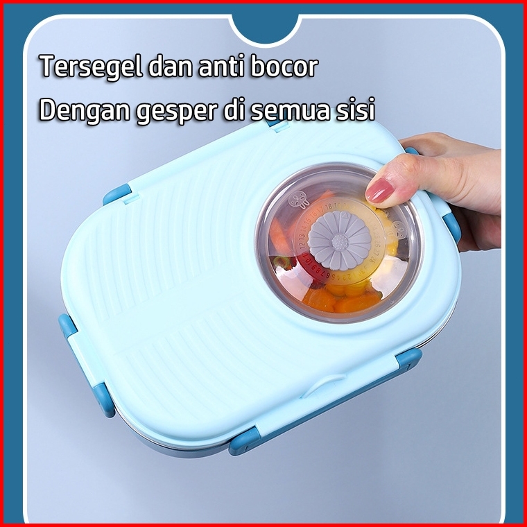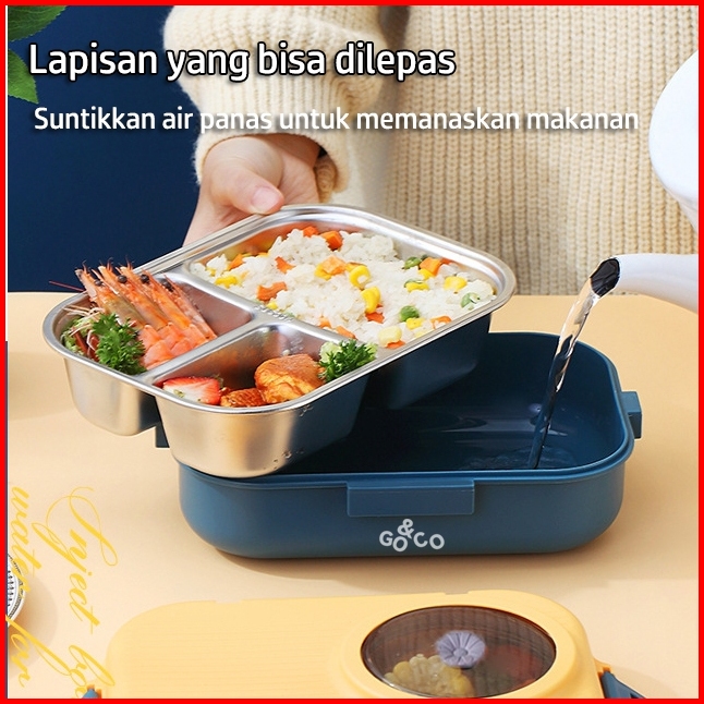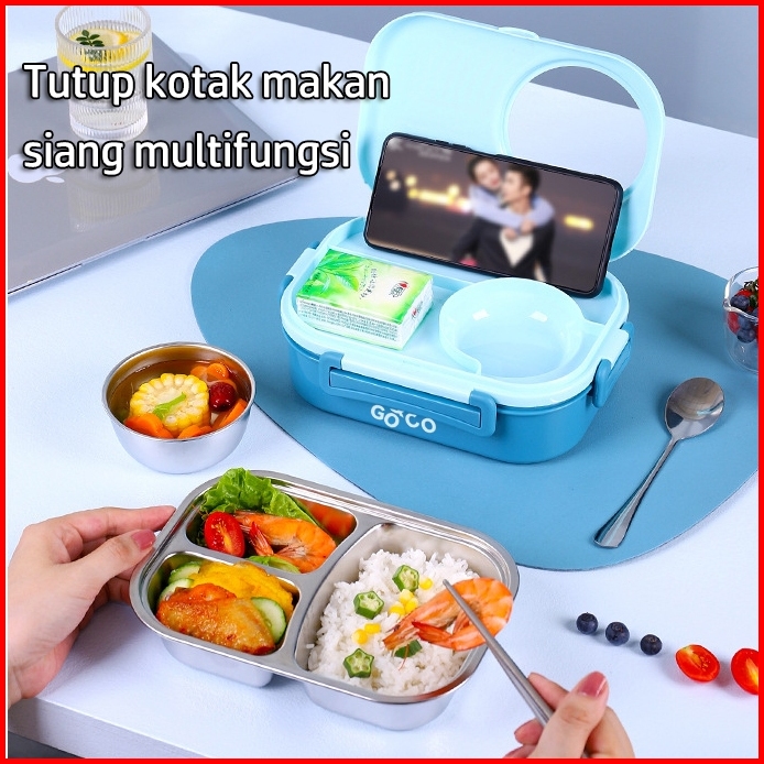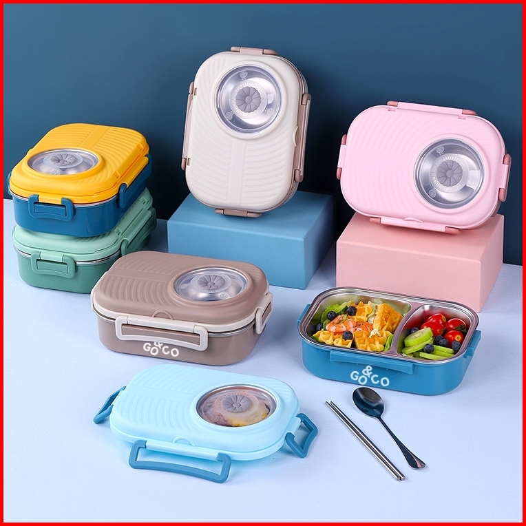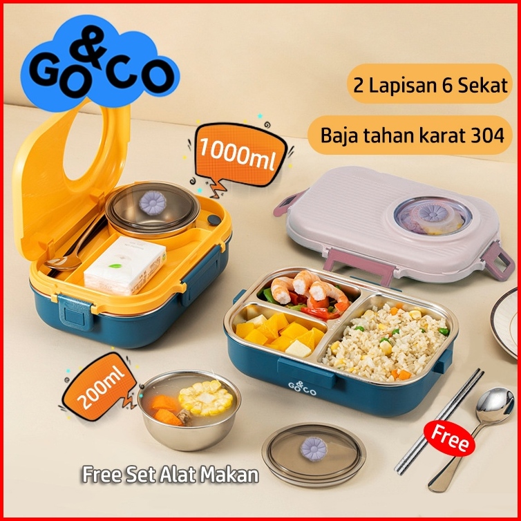 Go Co Lunch Box Kotak Makan 2 Lapisan 6 Sekat Sus 304 Stainless Steel Tahan Panas Dan Anti Tumpah