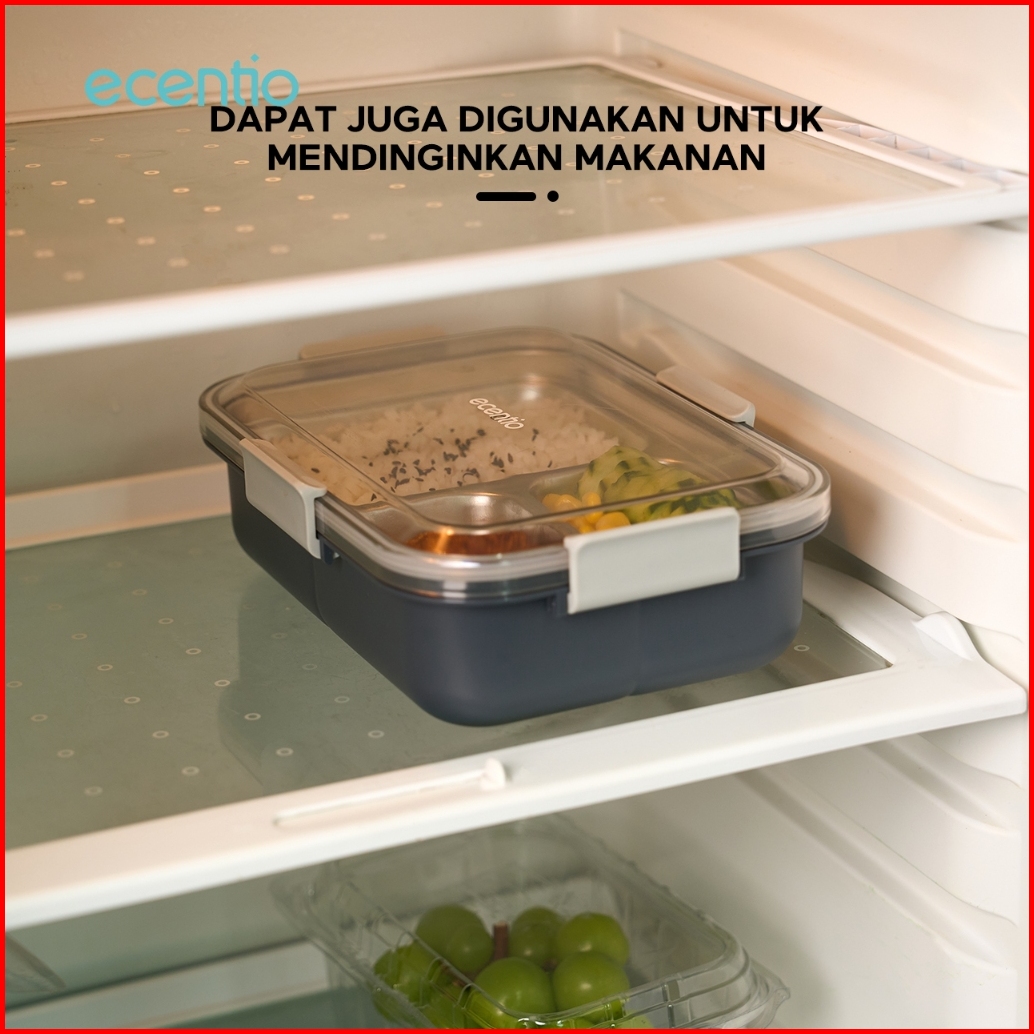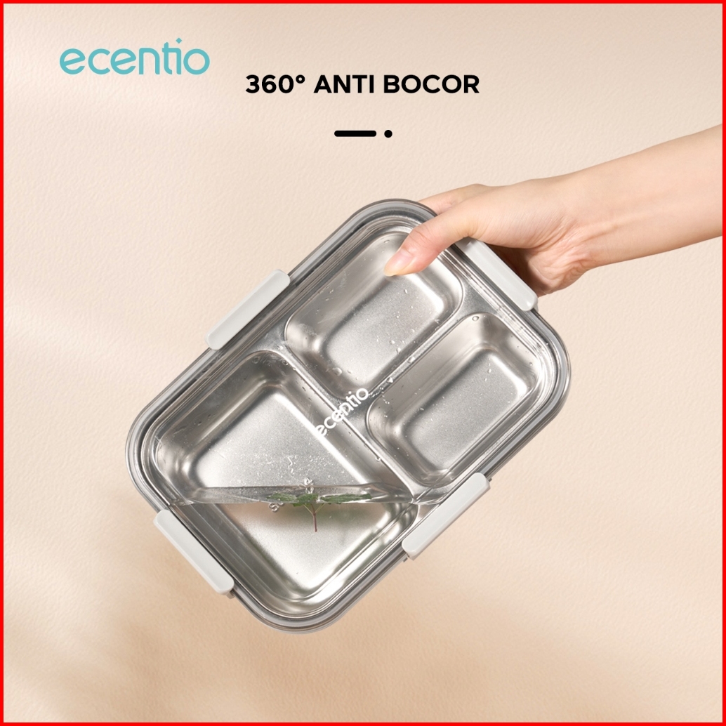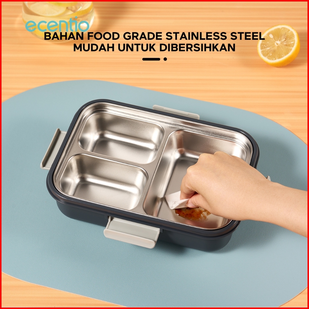 Grosir Ecentio 850ml Tempat Makan Stainless Kotak Makan 3 Grid Lunch Box Anti Tumpah Microwave Dipanaskan With 2-in-1 Fo