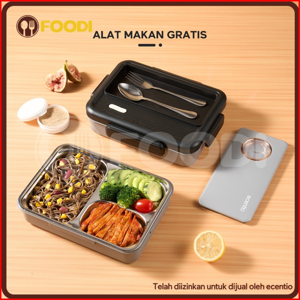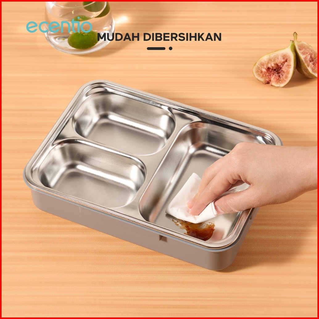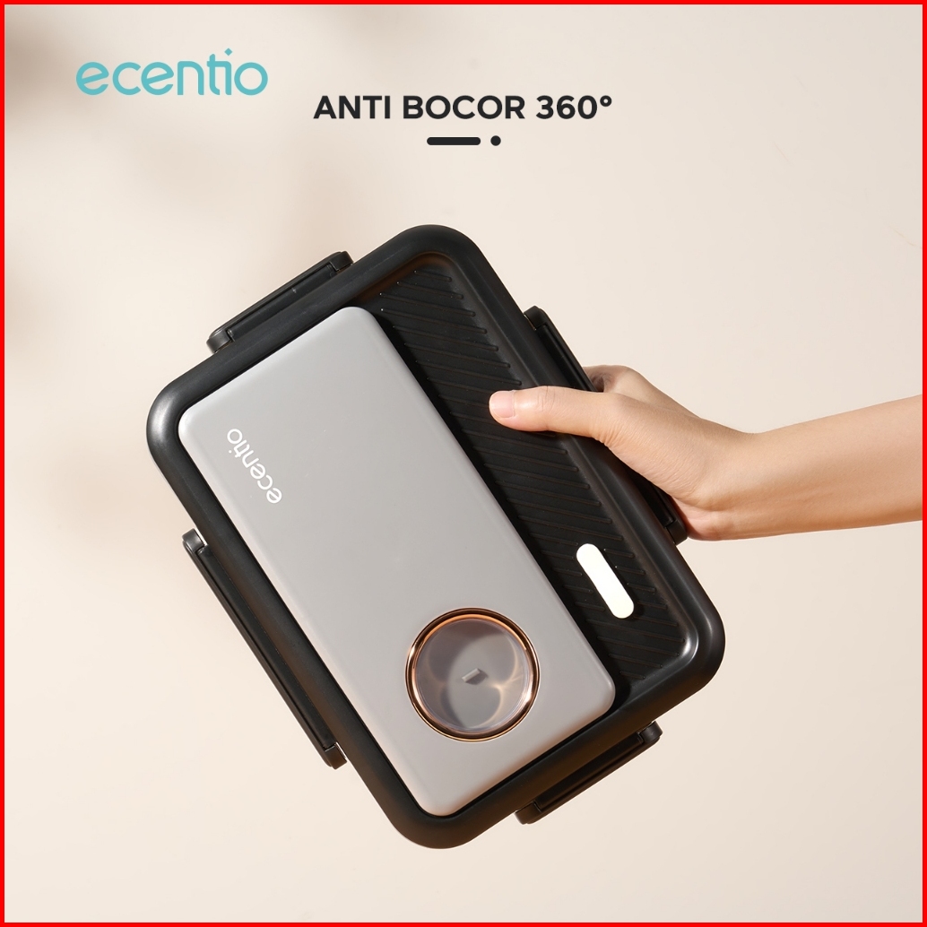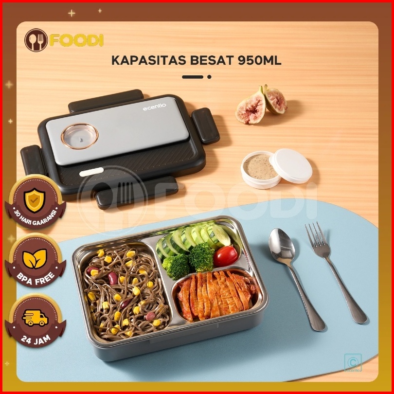 1.0 Anti Tumpahecentio Foodi Lunch Box Stainless 3 Sekat 950ml Kotak Makan Lunch Box Tahan Panas Anti Bocor Hitam Abu-ab