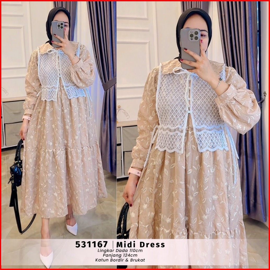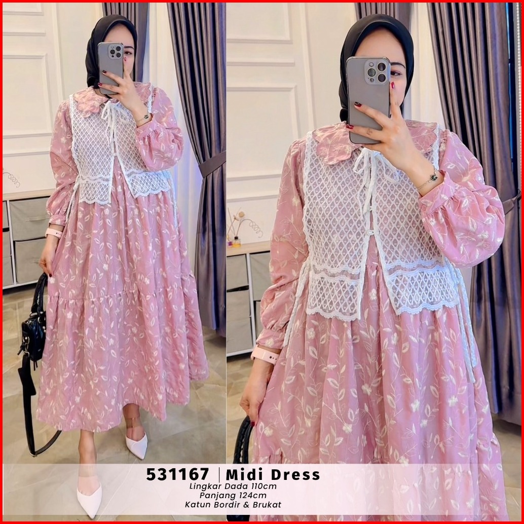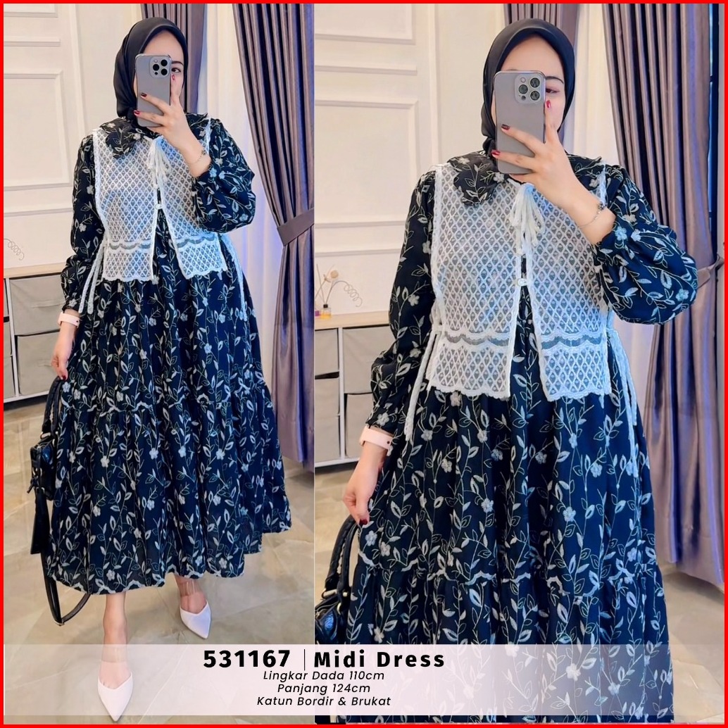 Extu Heritage - Nayara Midi Dress Bunga Kombinasi Brukat Dress Elegan Kekinian - 531071 531002 531167