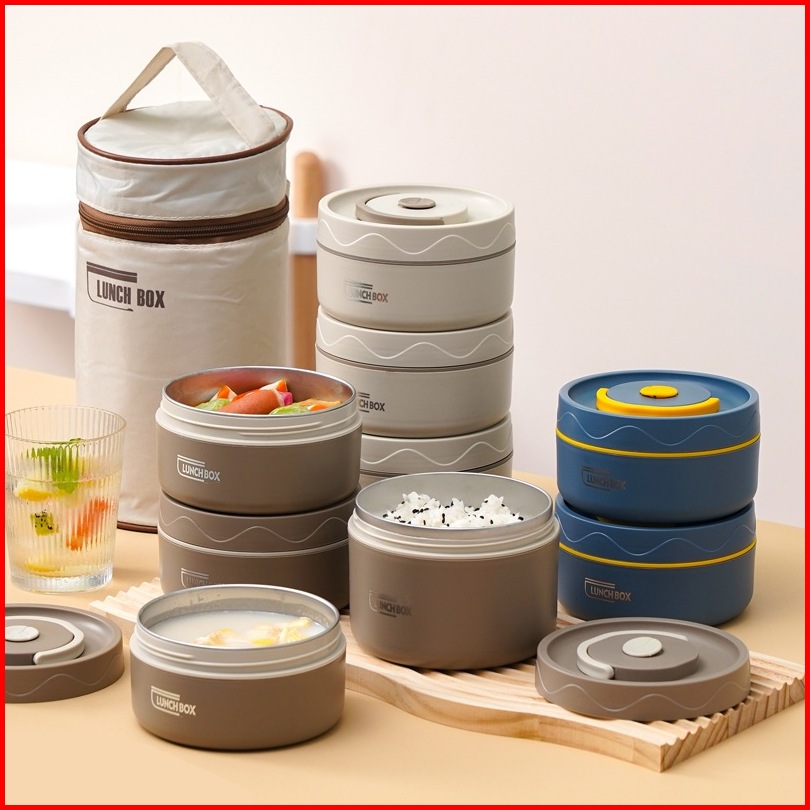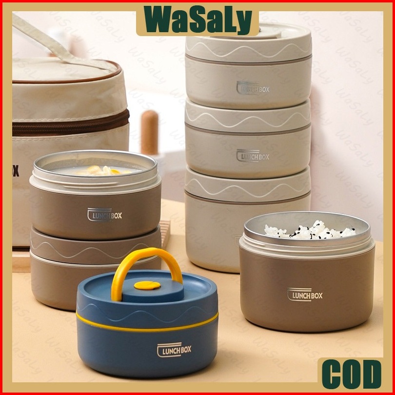 1 Set 304 Kotak Makan Siang Bento Portabel Tahan Bocor Gaya Jepang Round Stainless Lunch Box Kotak Makan Portable Tahan