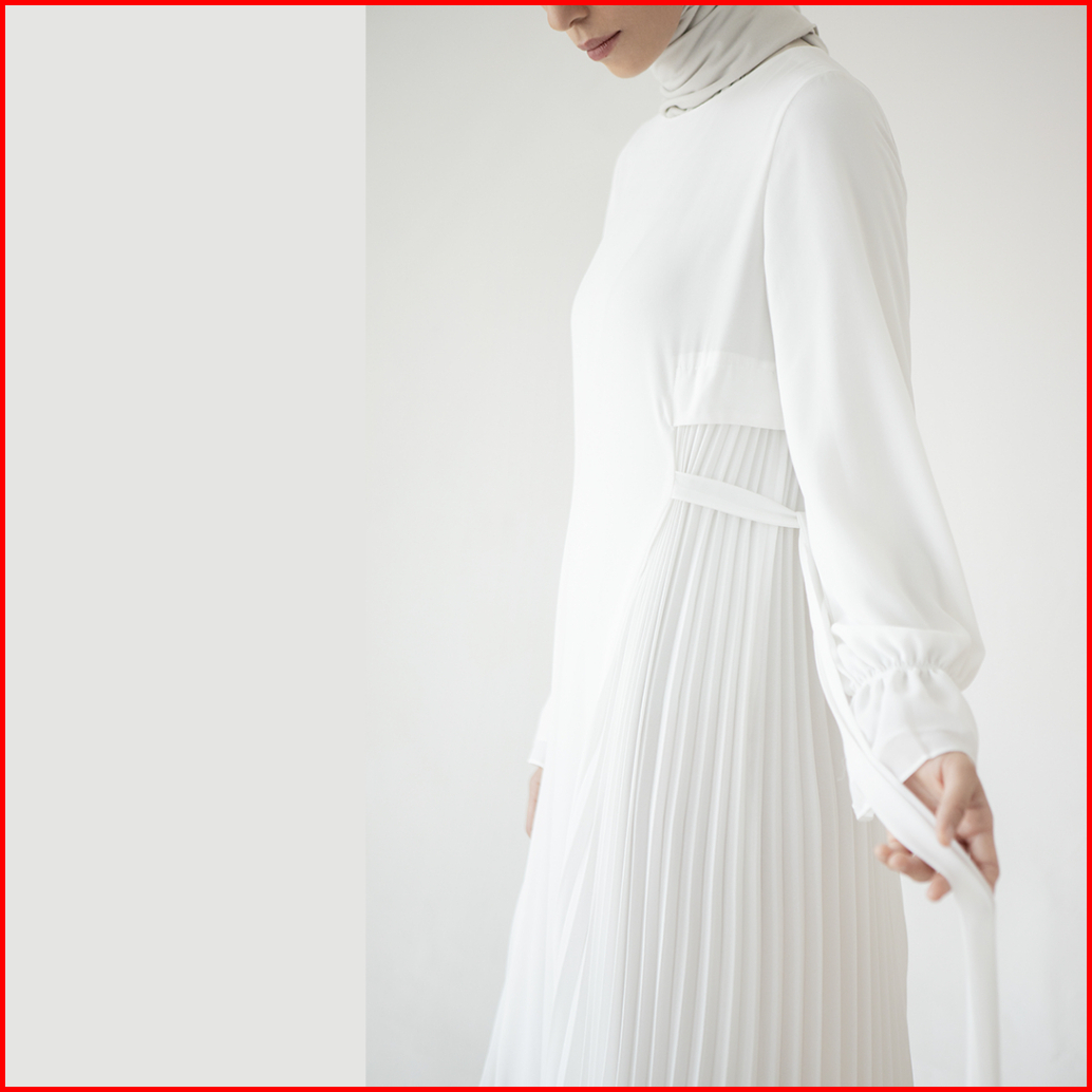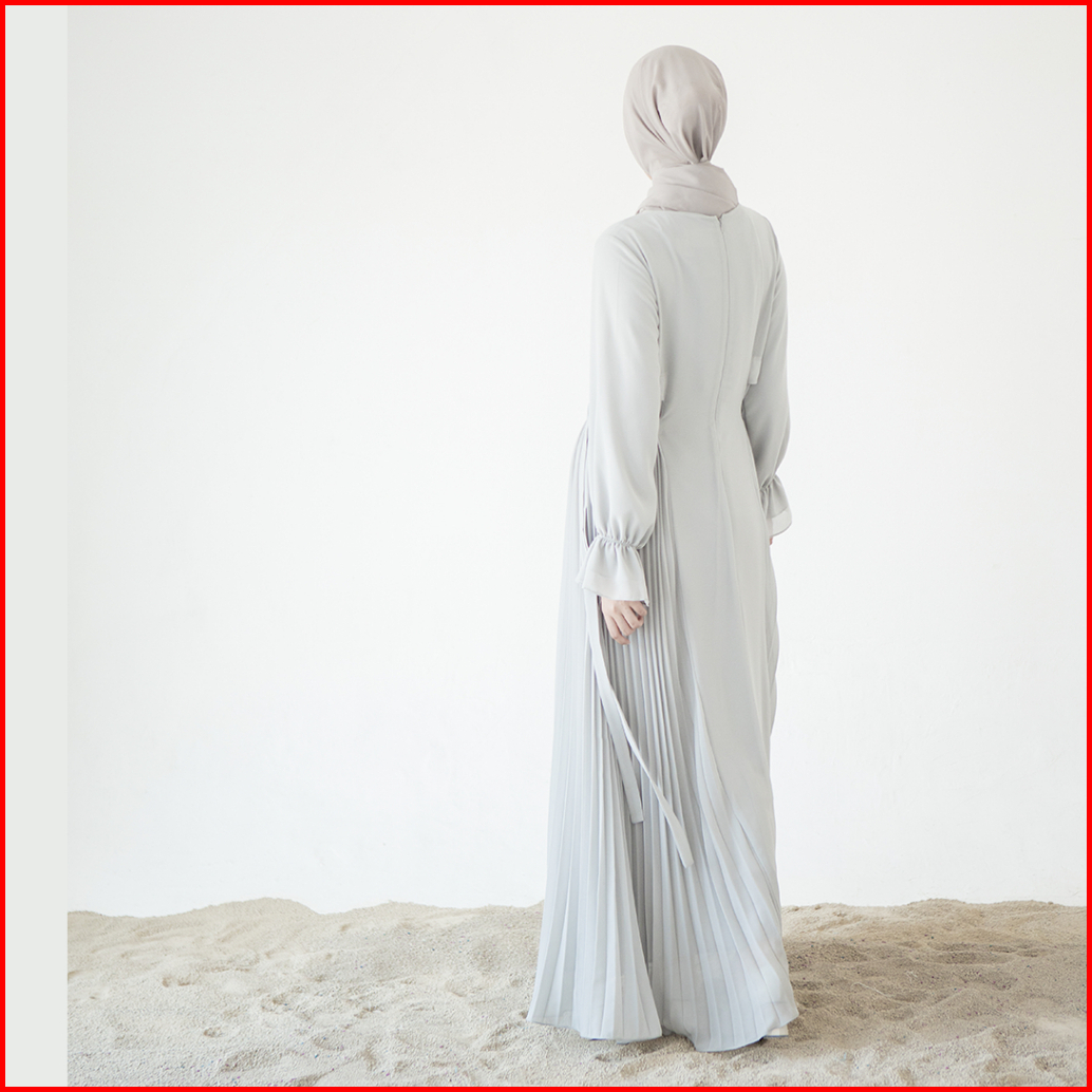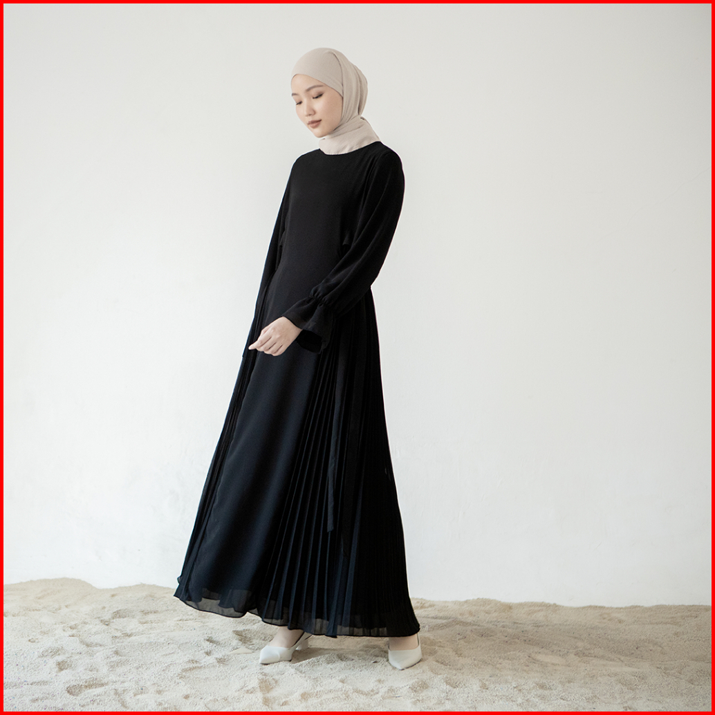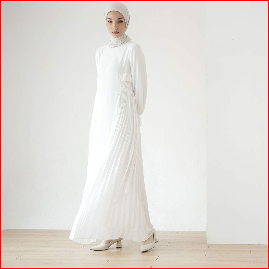 Taima By Aska Label - Gamis Wanita Details Pleats Maxi Dress Panjang Wanita Warna Putih Grey Hitam