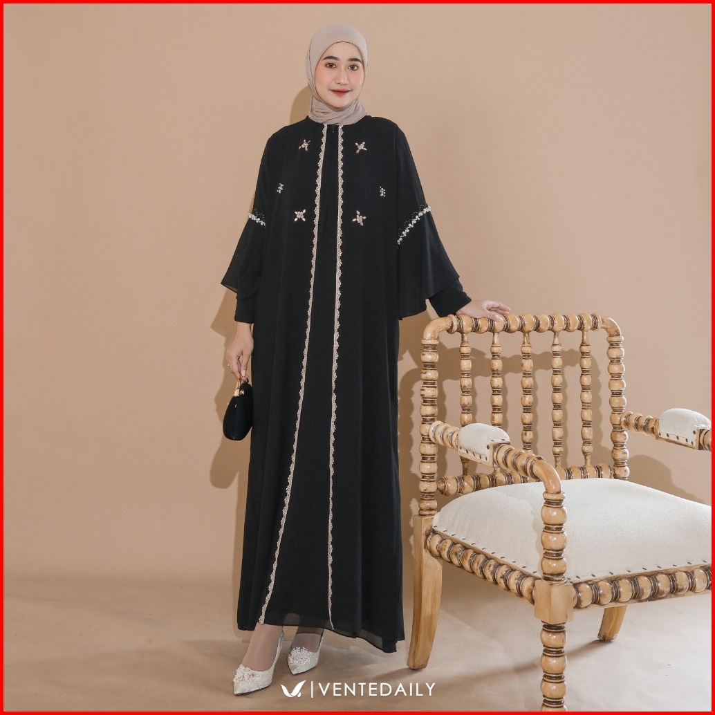 Ventedaily - Sabila Maxy Ceruty Gamis Payet Semi Outer Lebaran Busana Kondangan Elegant Jumbo