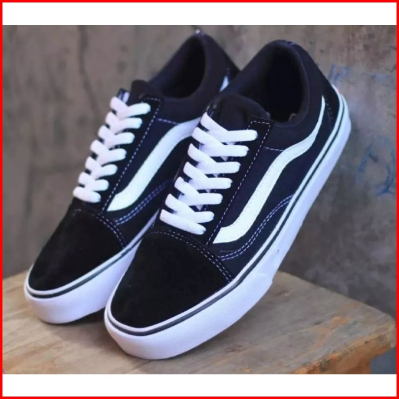 Sepatu Sneakers Hitam List Putih Classic Old School Sepatu Pria Sepatu Wanita