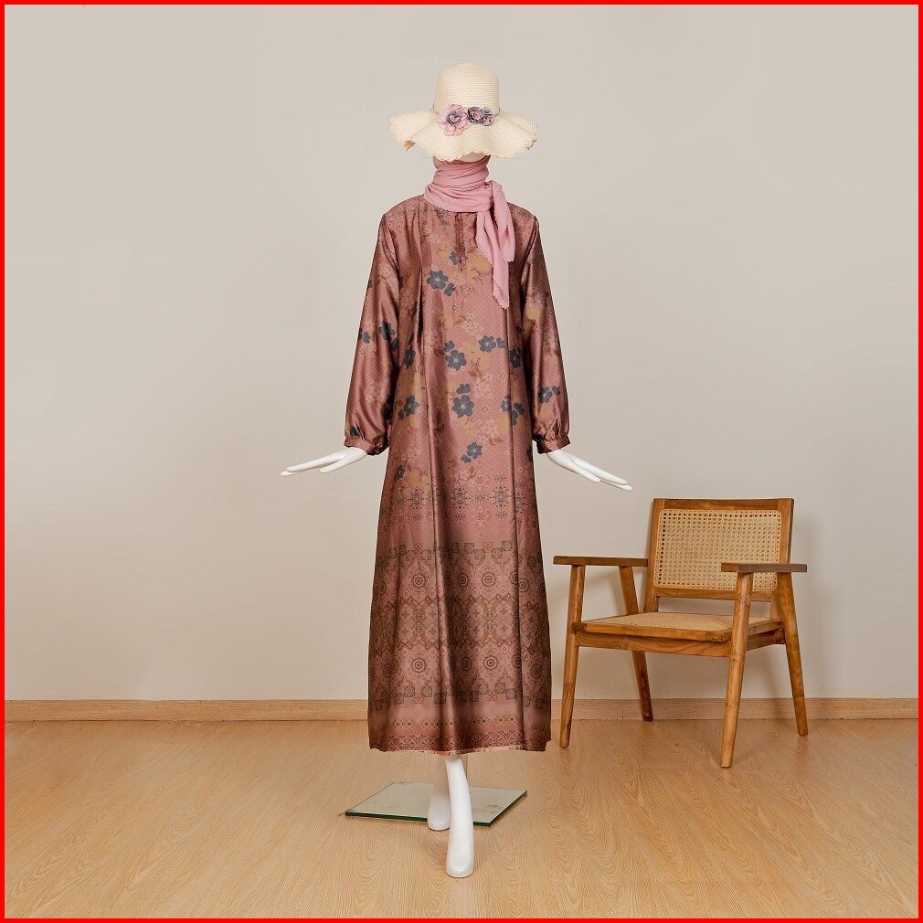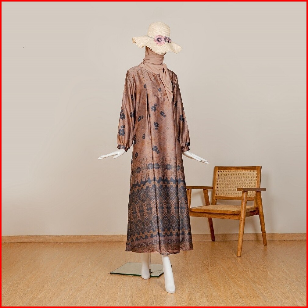 Le Khari Elona Dress Bahan Premium Brown Silk Gamis Busui Gamis Homedress Size S-xl