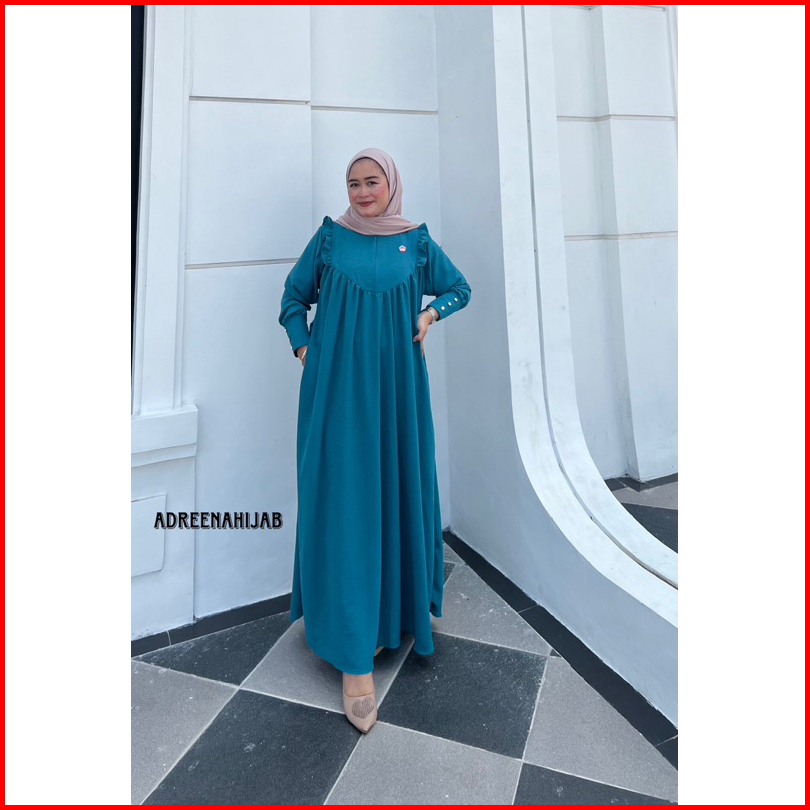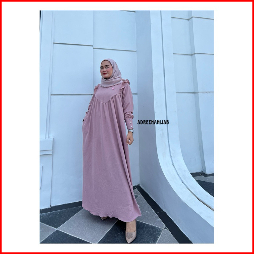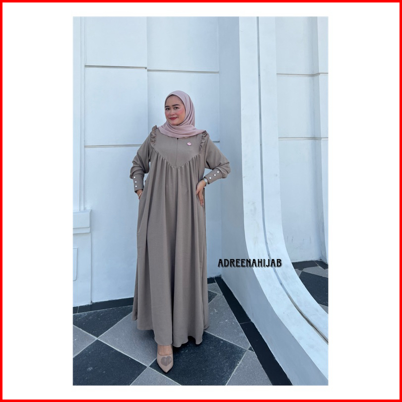 Adreenahijab- Lesha Gamis Dress Wanita Cantik Remaja Dewasa Busui Ziper Lengan Kancing Mutiara Mewah Crincle Airflow Pre