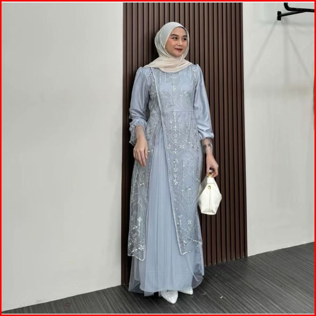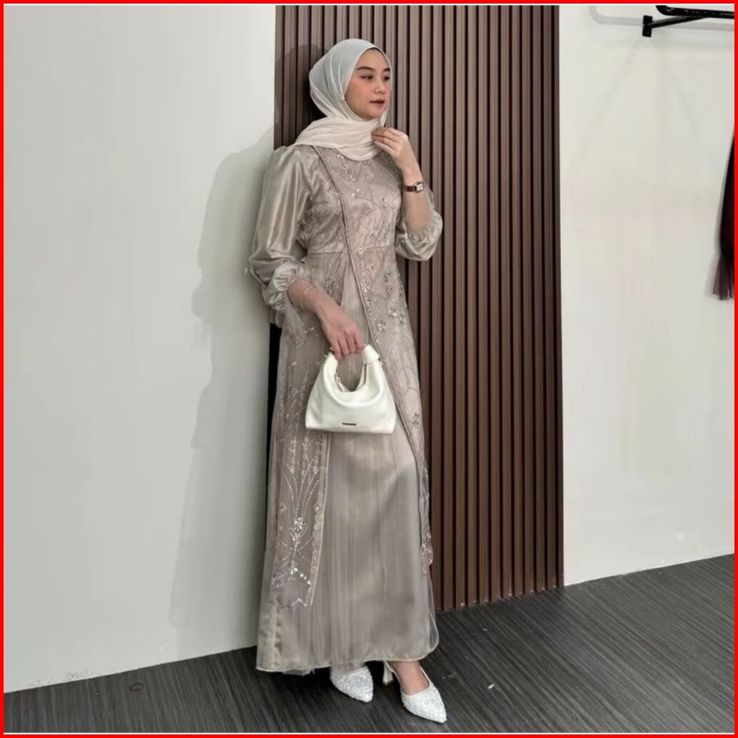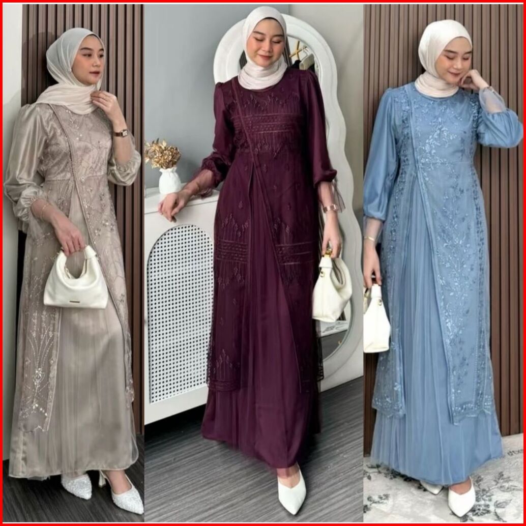 Kimar Dress Kondangan Mix Tile Premium Dress Burgundy Terbaru Wanita Mewah Elegan Gamis Silk Roberto