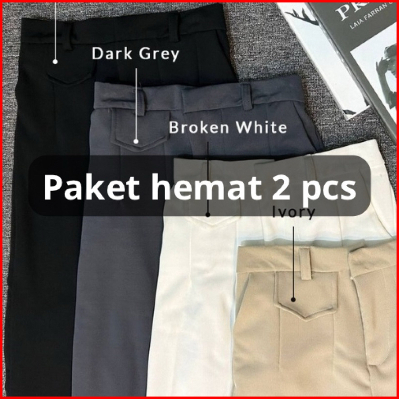 Paket Hemat 2 Pcs Oro Pants Celana Wanita Highwaist Panjang Kulot Bahan Anti Kusut Loose Pants Trouser Basic Kerja Korea