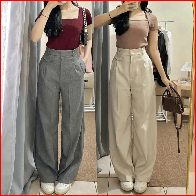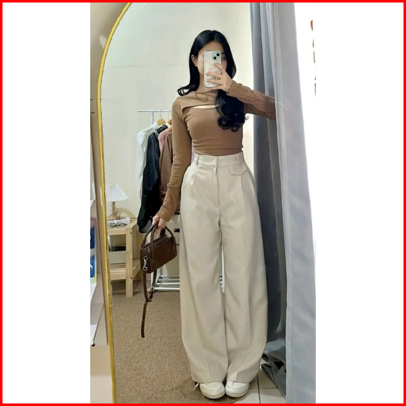 Oro Pants Celana Kekinian Wanita Kerja Kantor Korean Style Celana Loose Pants Anti Kusut Highwaits Trousers