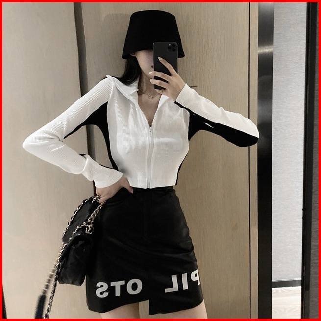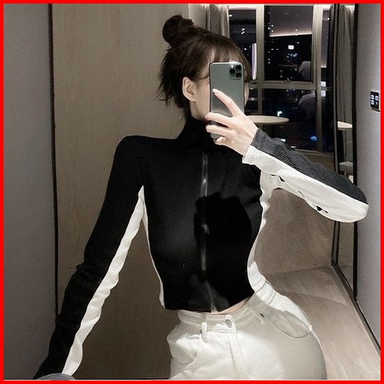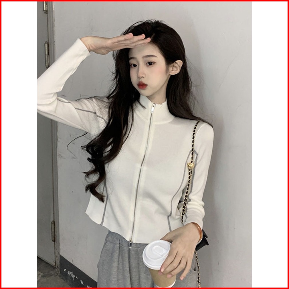 Ajw Jaket Vintage Zipper Knit Import Premium Wbh Atasan Wanita Monochrome Resleting Jaket Rajut Hoodie Wanita Crop Vinta