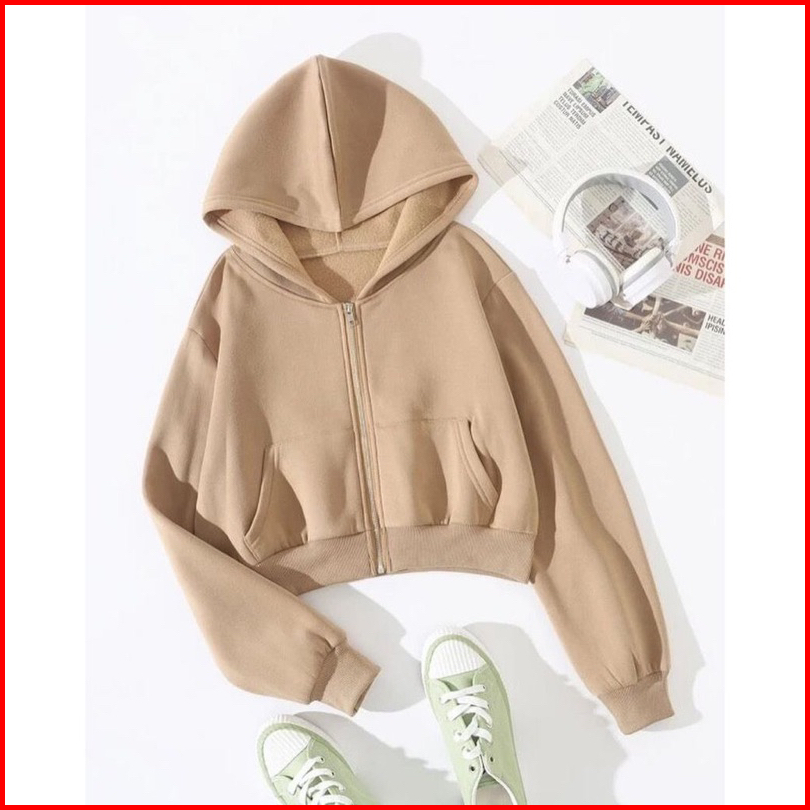Jaket Hoodie Zipper Basic Crop Polos Ld 110 P 48