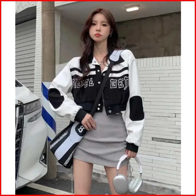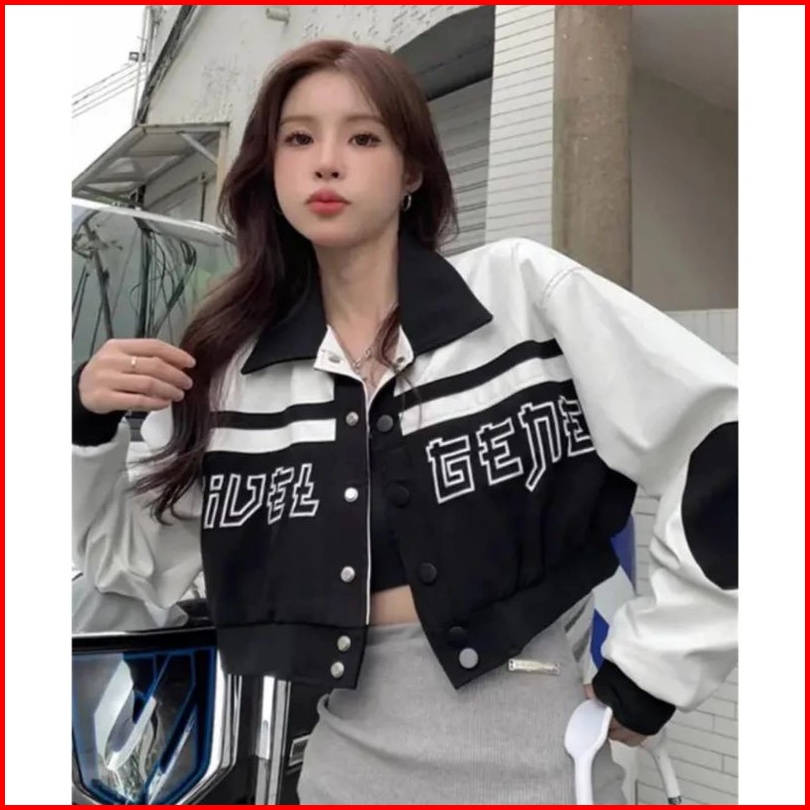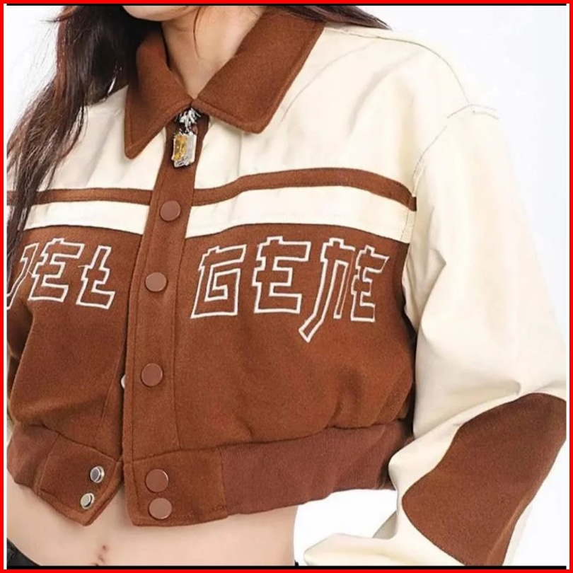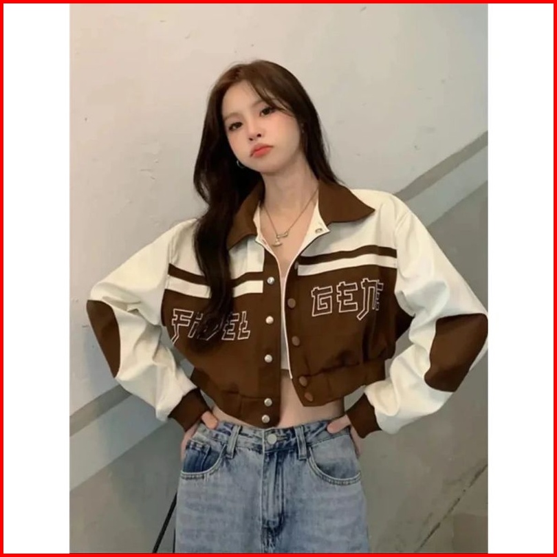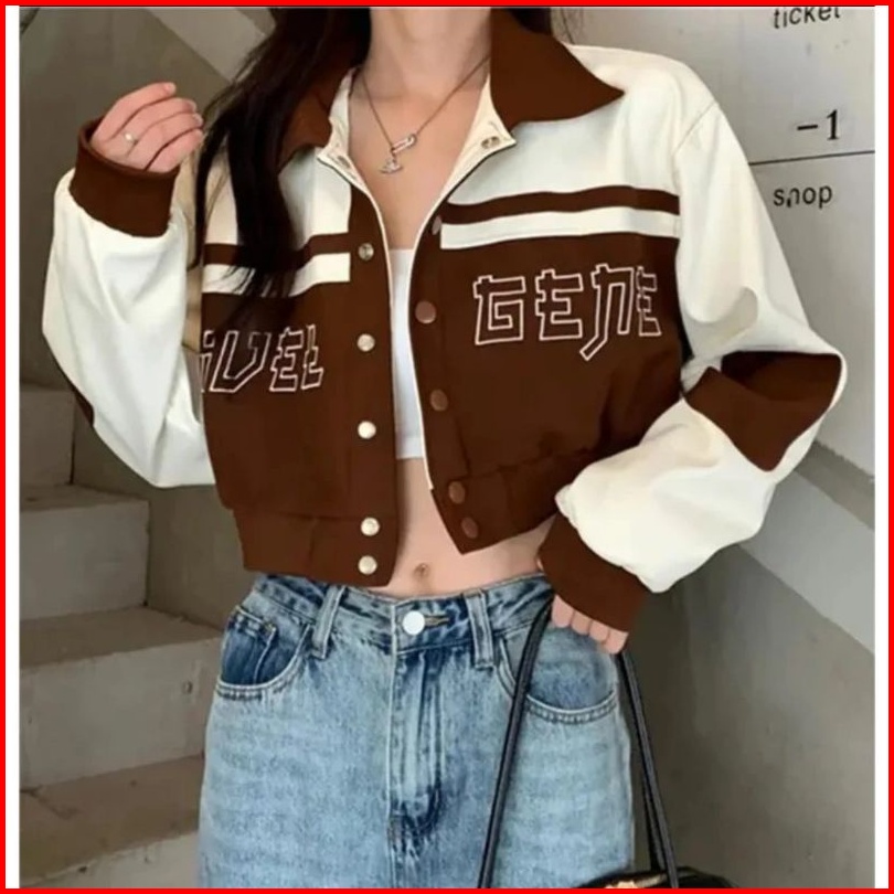 Aseo. . Sweater Fuel Gene Kerah Jaket Crop Style Korean Jaket Varsity Bahan Fleece Sweater Jaket Wanita Kerah Baseball C
