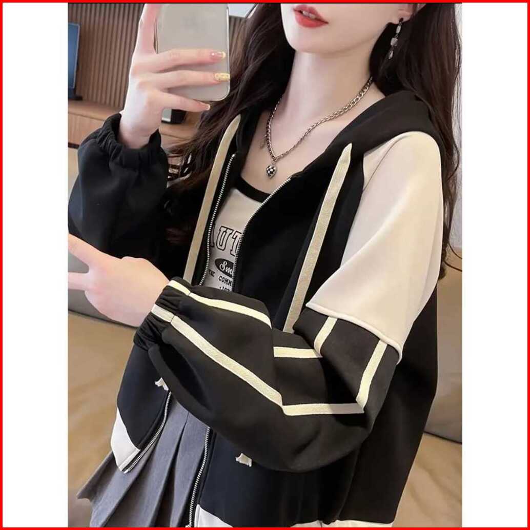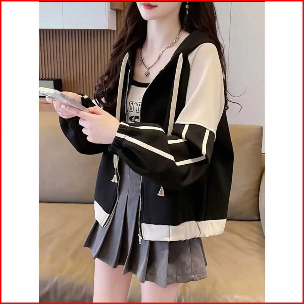 Valina Jacket Crop Wanita Oversize - Jacket Zipper Hoodie Wanita Korean Style Kekinian