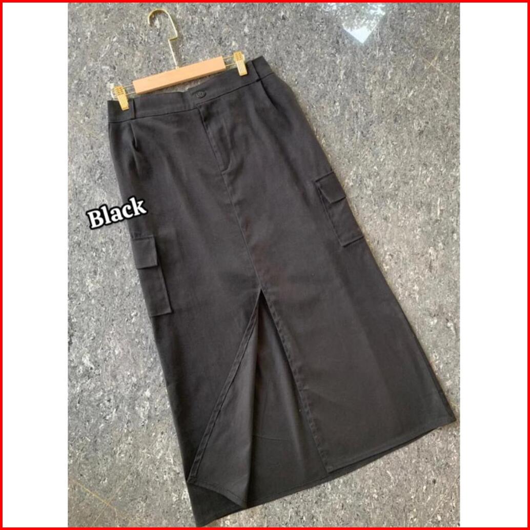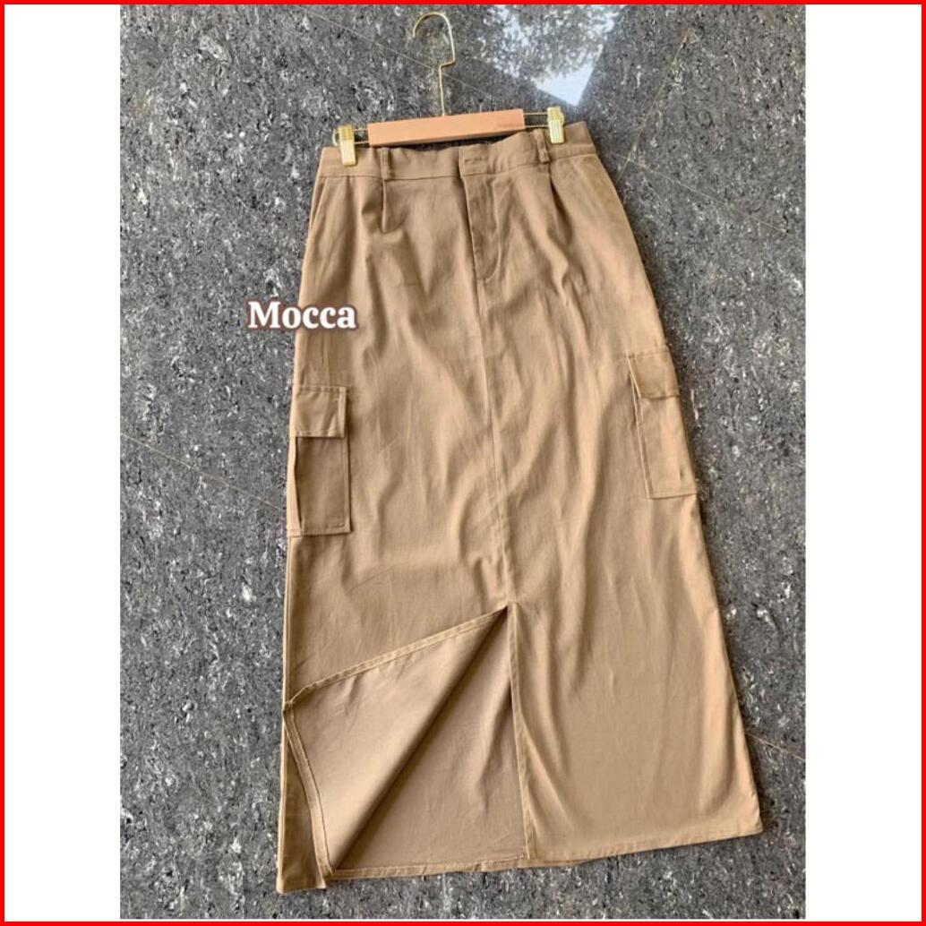 Rok Cargo Twill Belah Tengah Rok Cargo Wanita Korean Style Rok Cargo Standart Jumbo