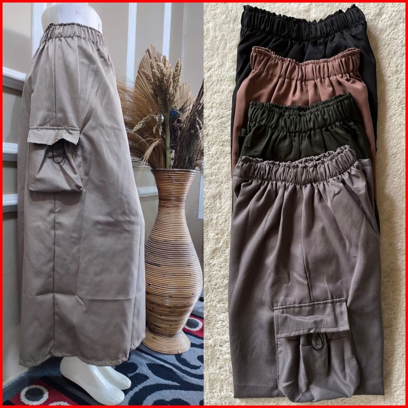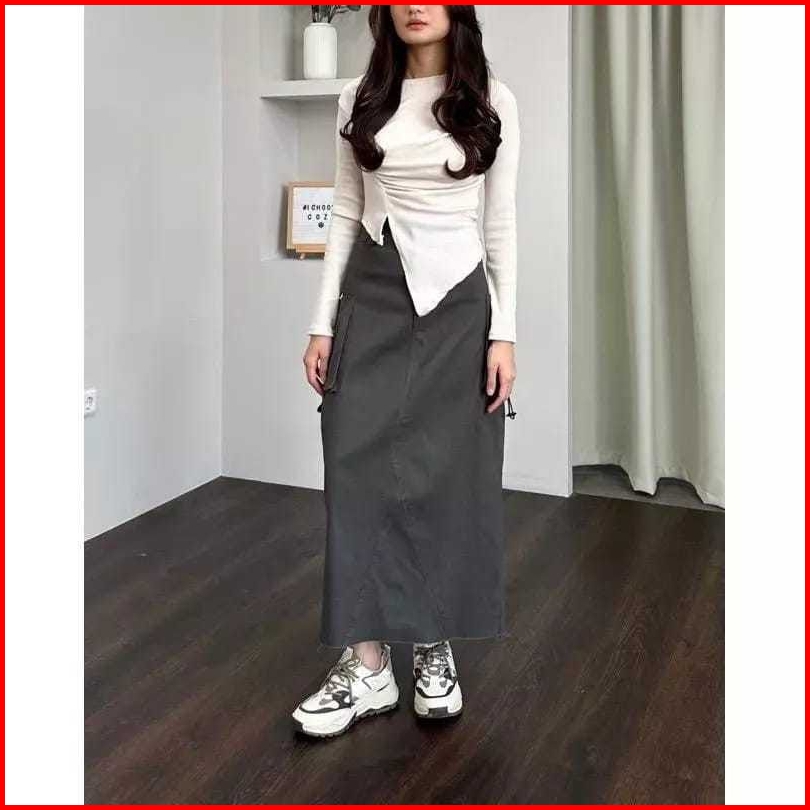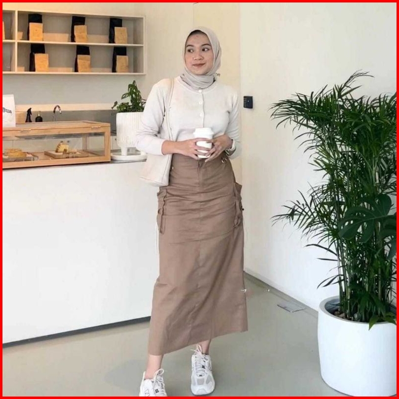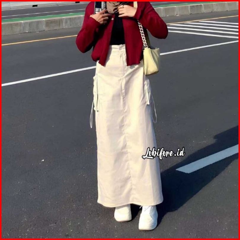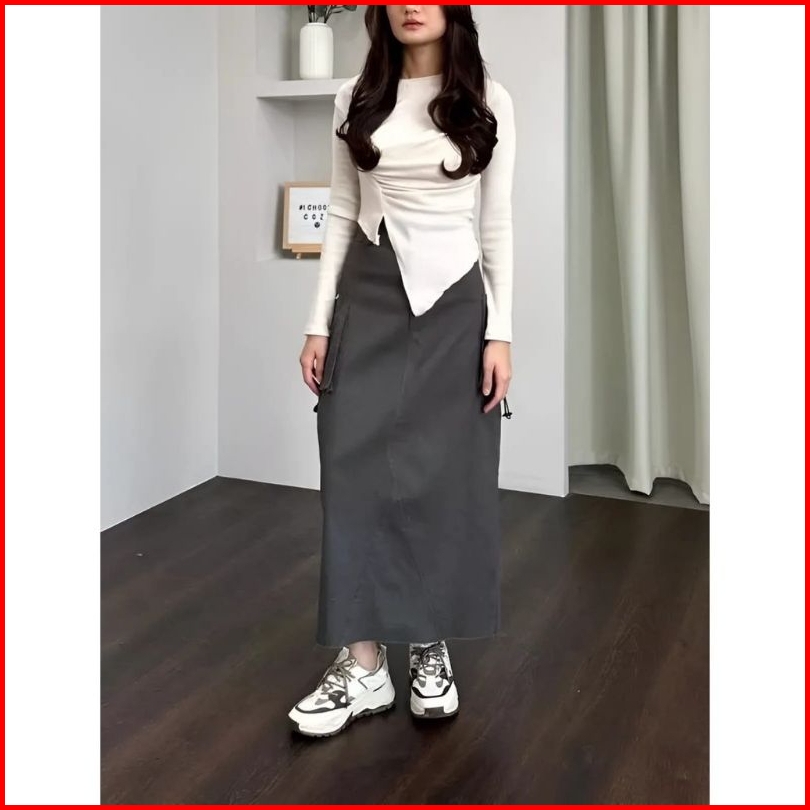 Rok Cargo Wanita Kantong Serut Bahan Katun Twill Rok Cargo Kantong Serut Twill