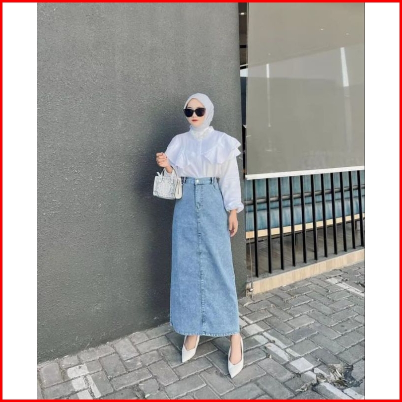 Rok Jeans Span Theana Highwaist Wanita Skirt Premium Polo