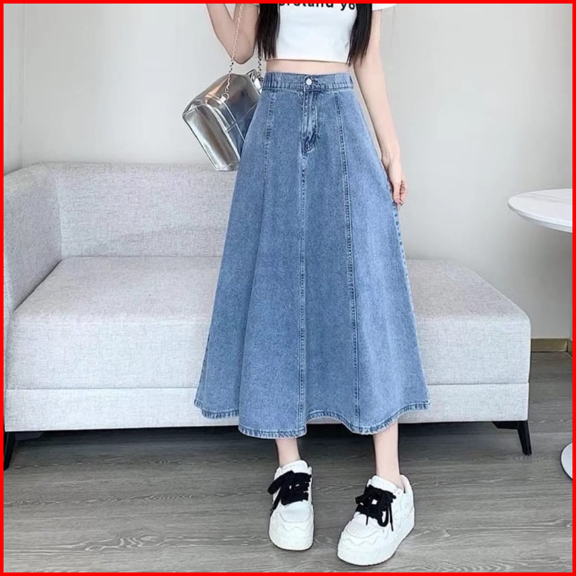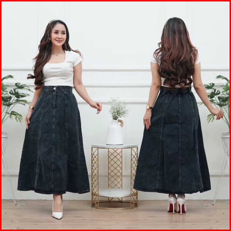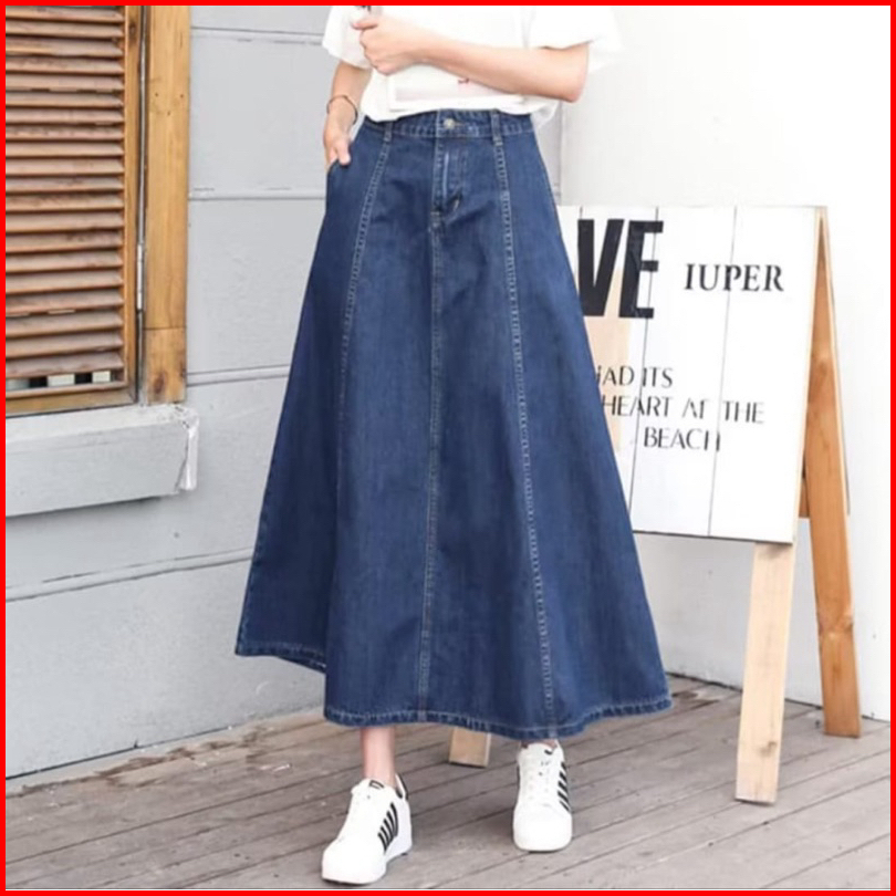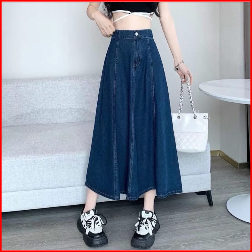 Jiso Rok Jeans Wanita Hightwaist A-linen Korean Style 7 9 Rok Jeans Mayung Standar Jumbo