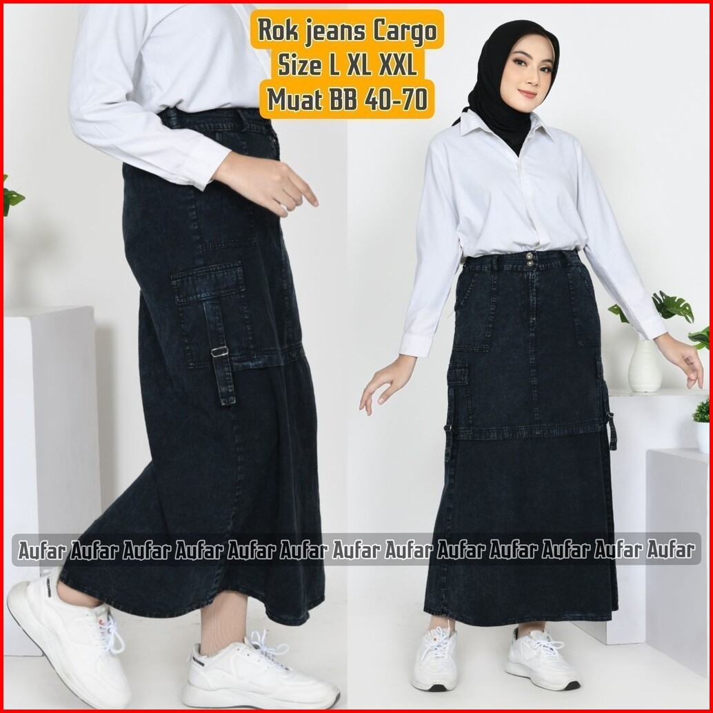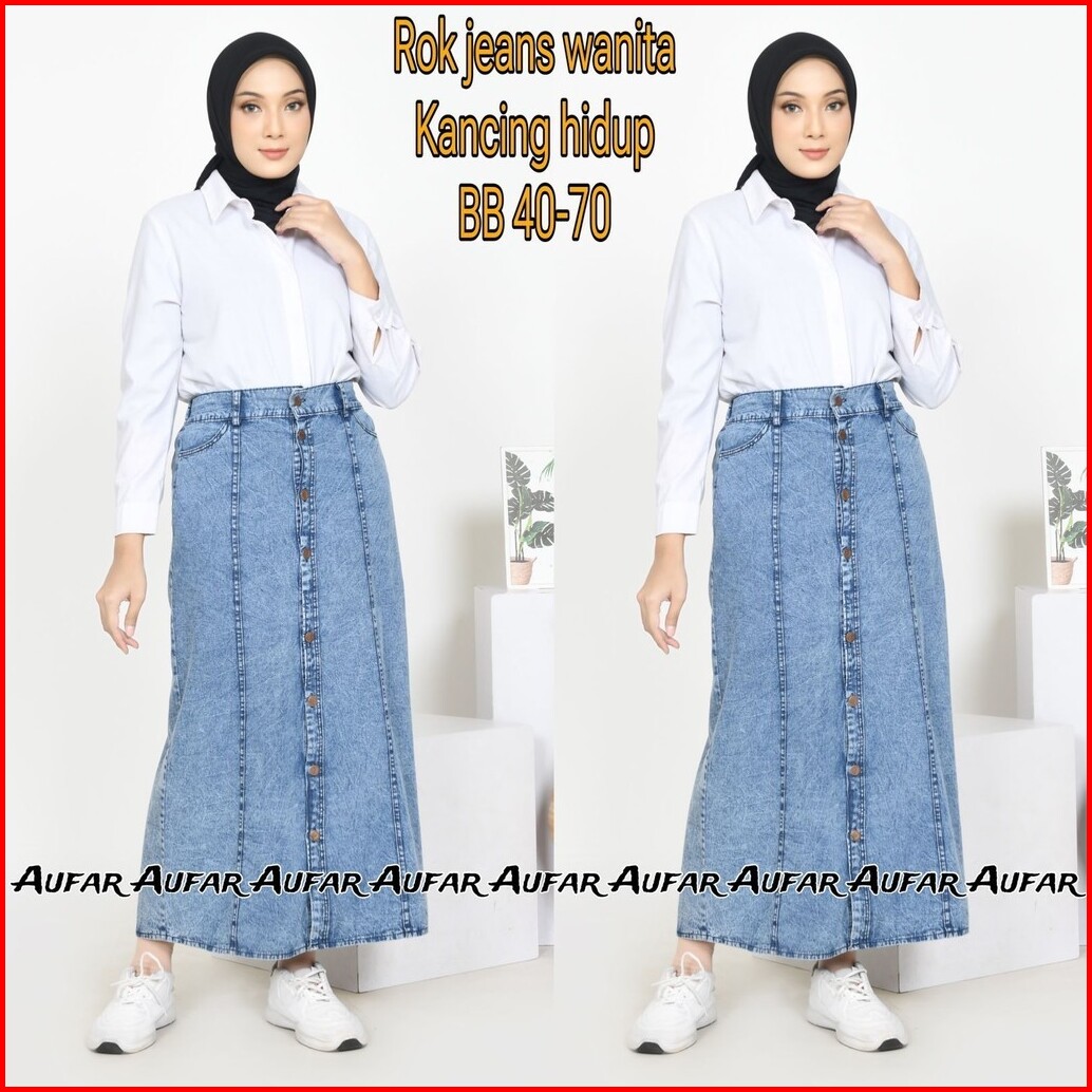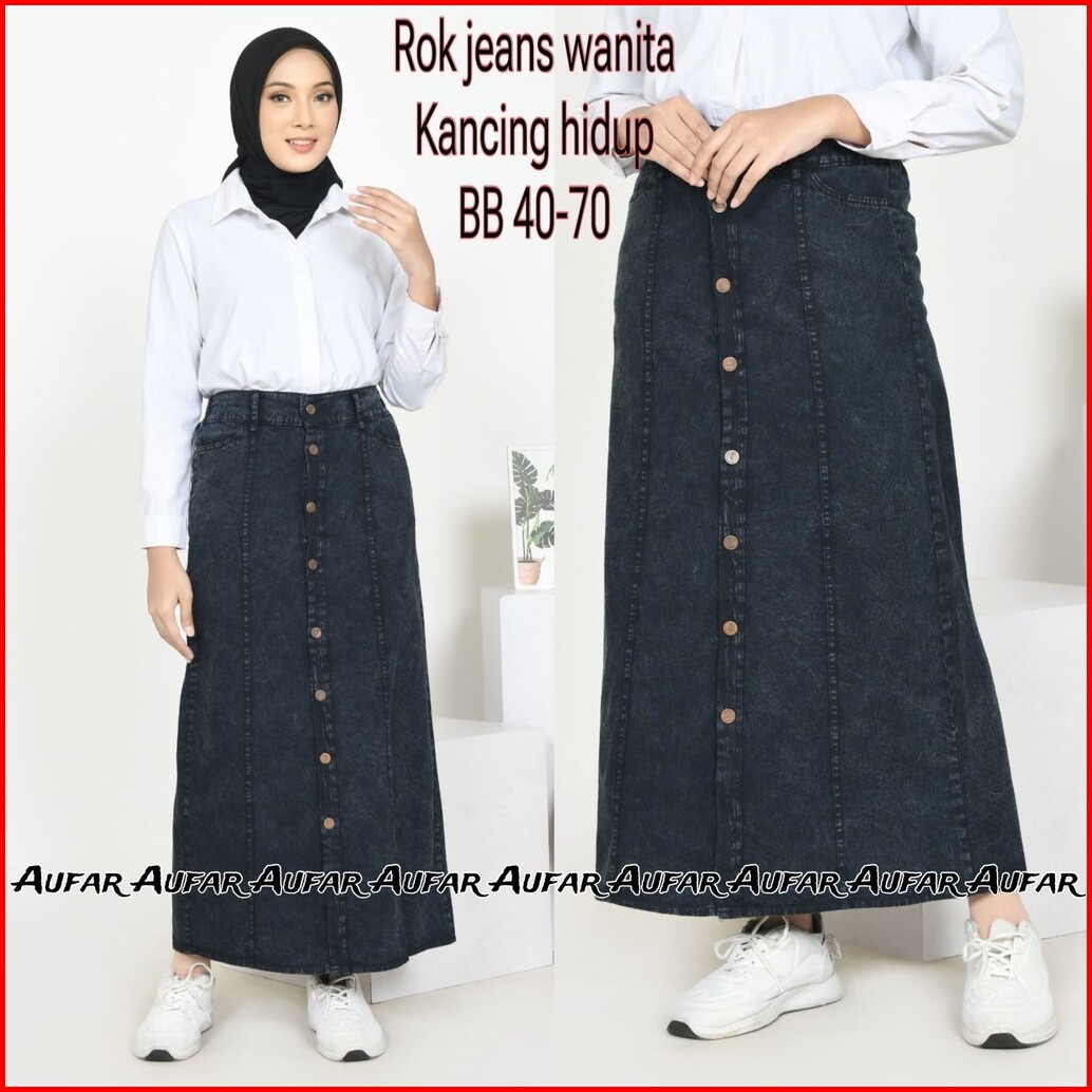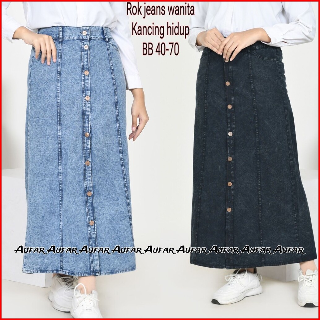 Rok Jeans Kancing Wanita Dewasa Bb 40-70