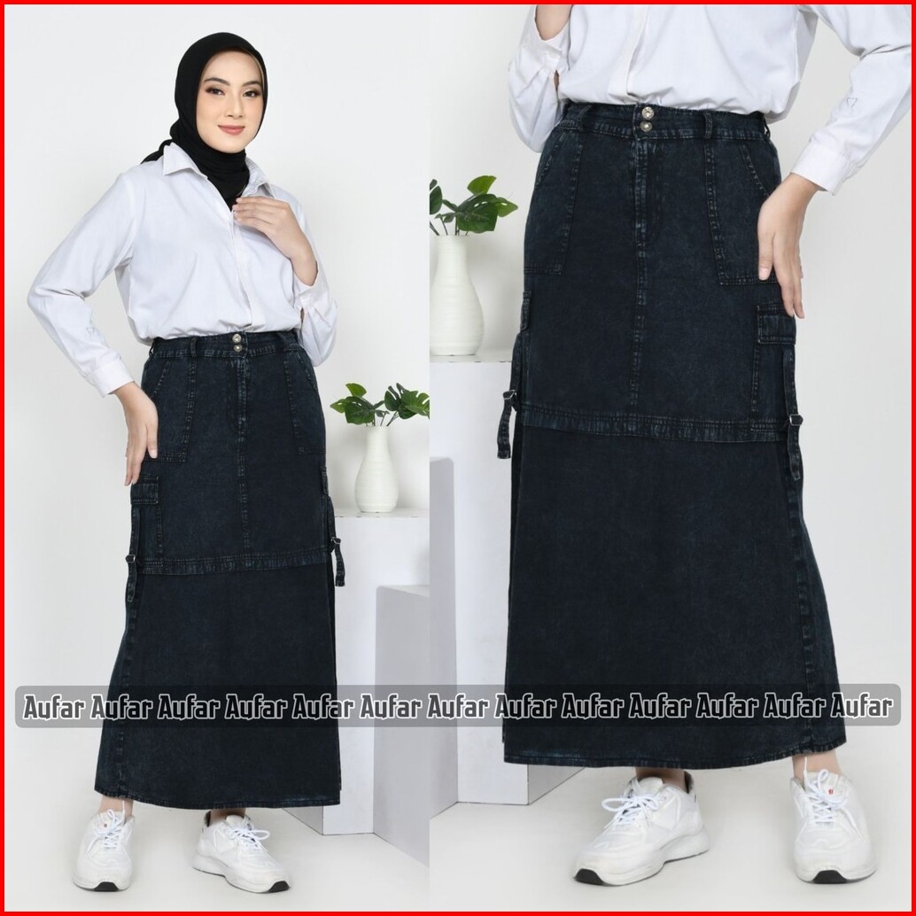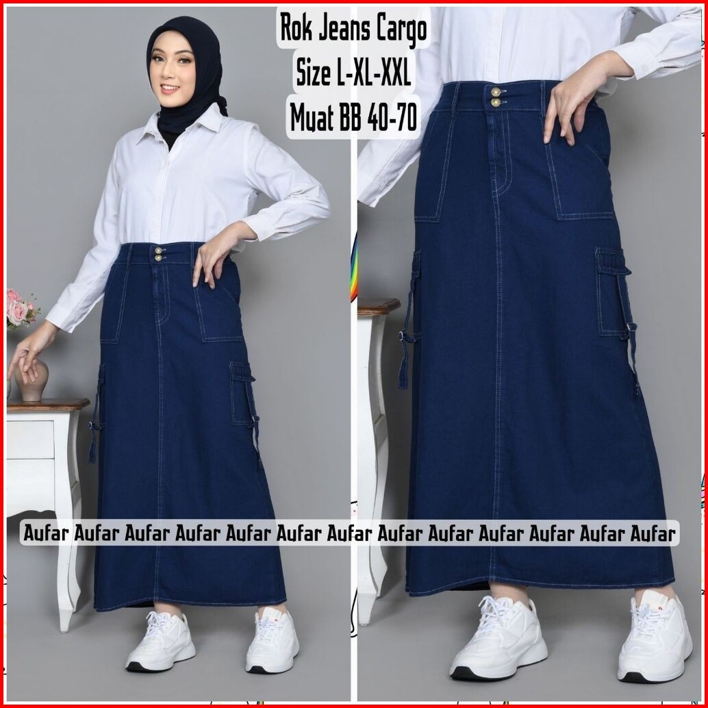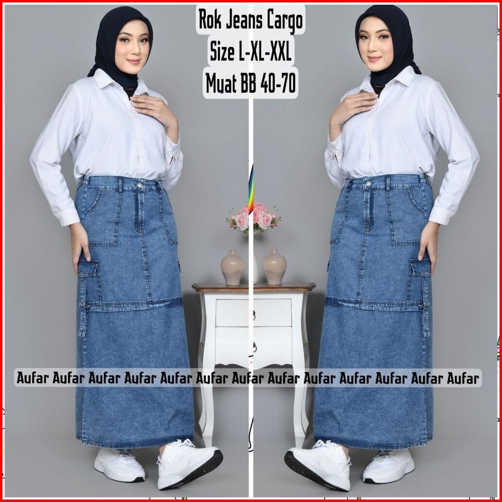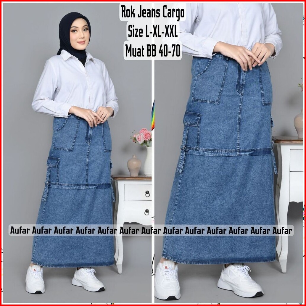 Rok Jeans Kancing Wanita Dewasa Bb 40-70