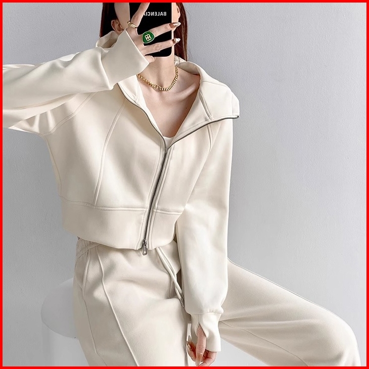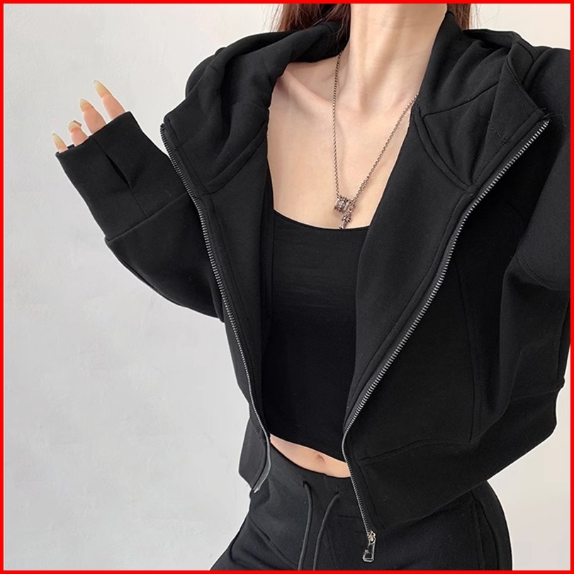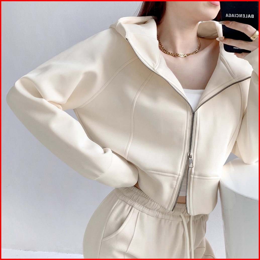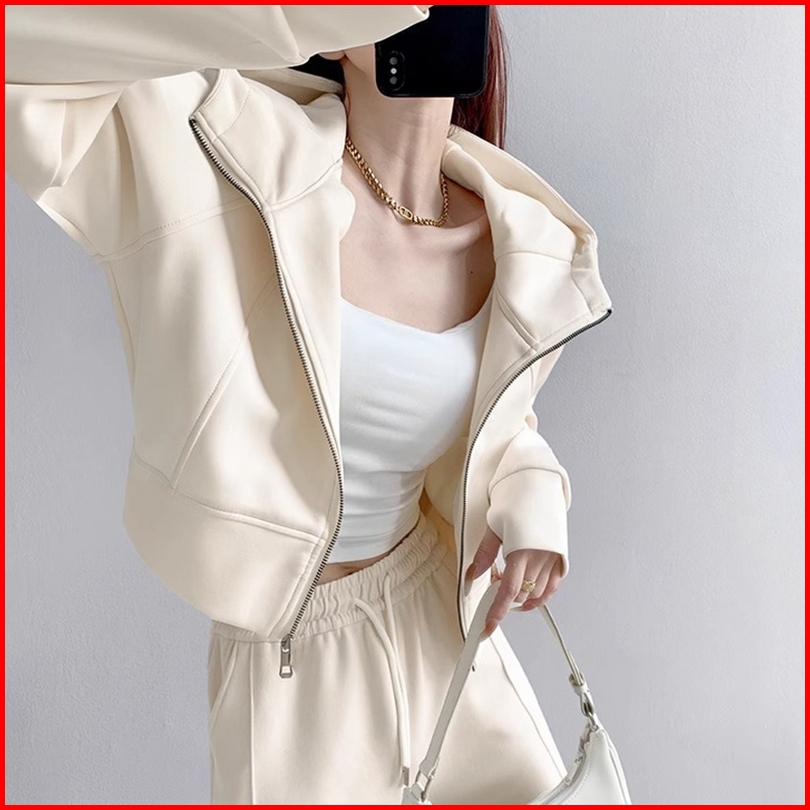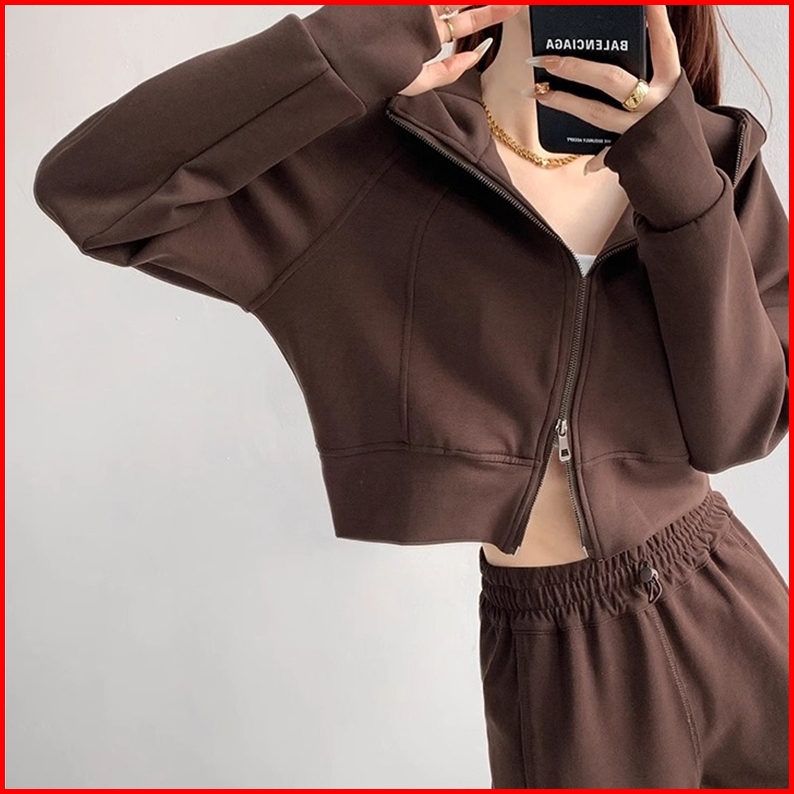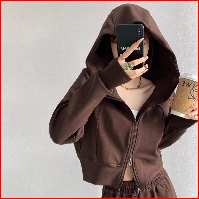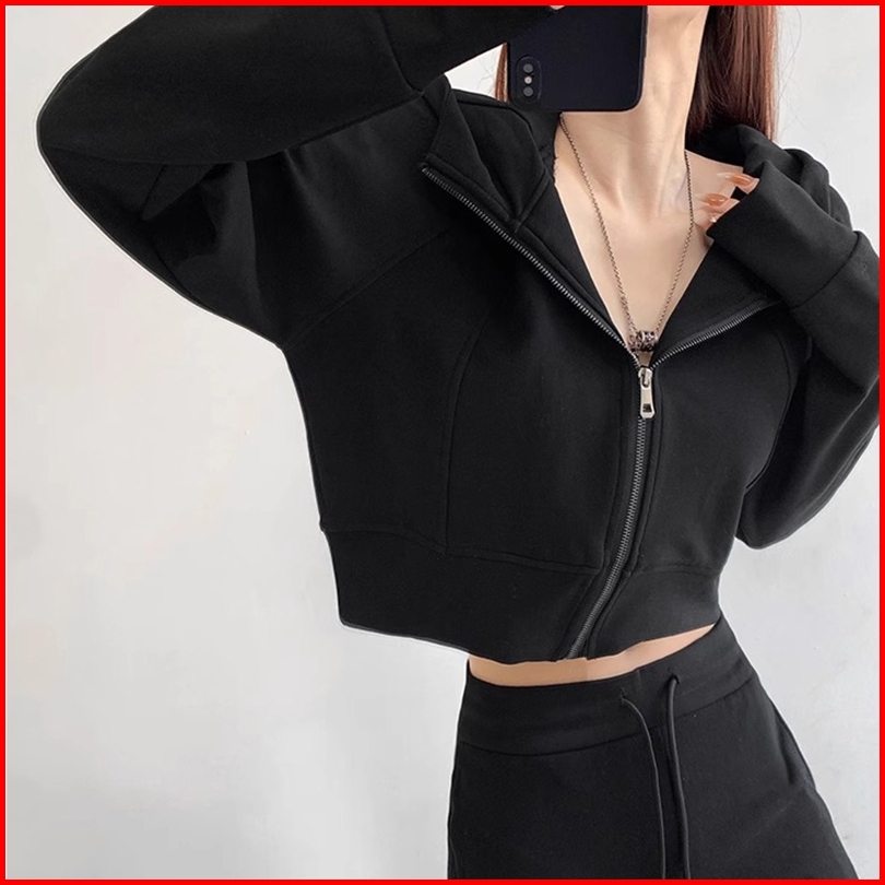Premium Jaket Crop Wanita Korean Import Style Swepo Hoodie Jaket Zipper Ganda Polos
