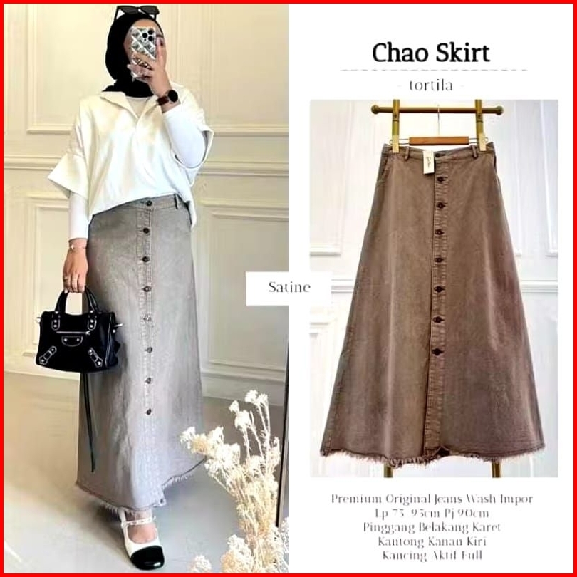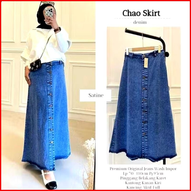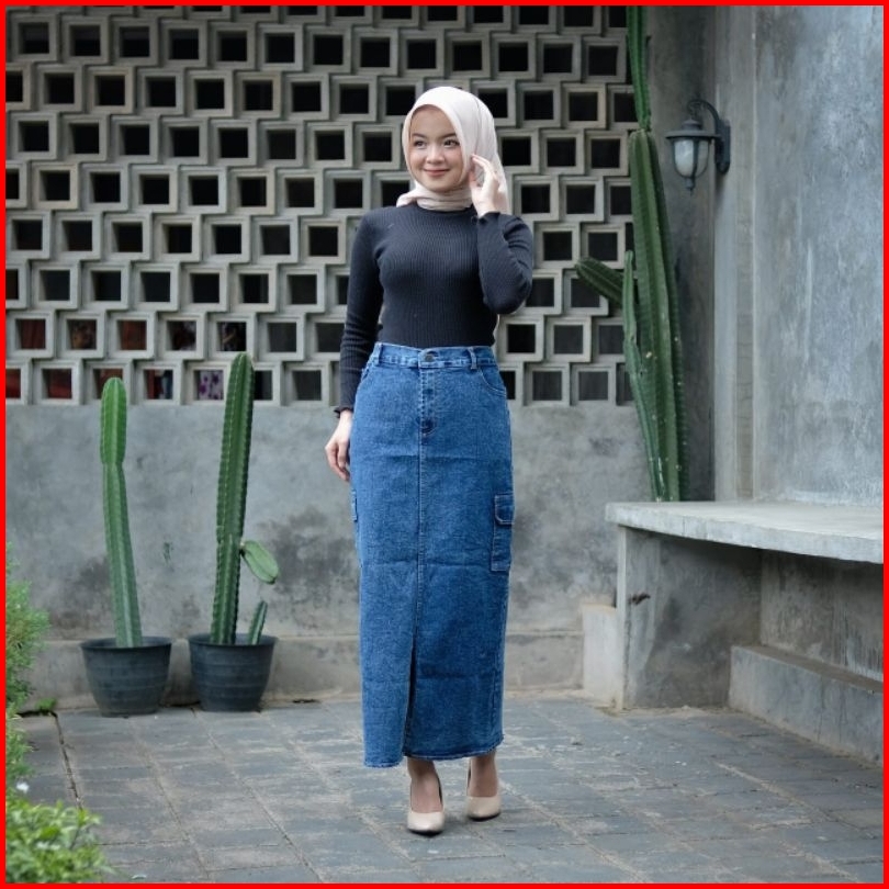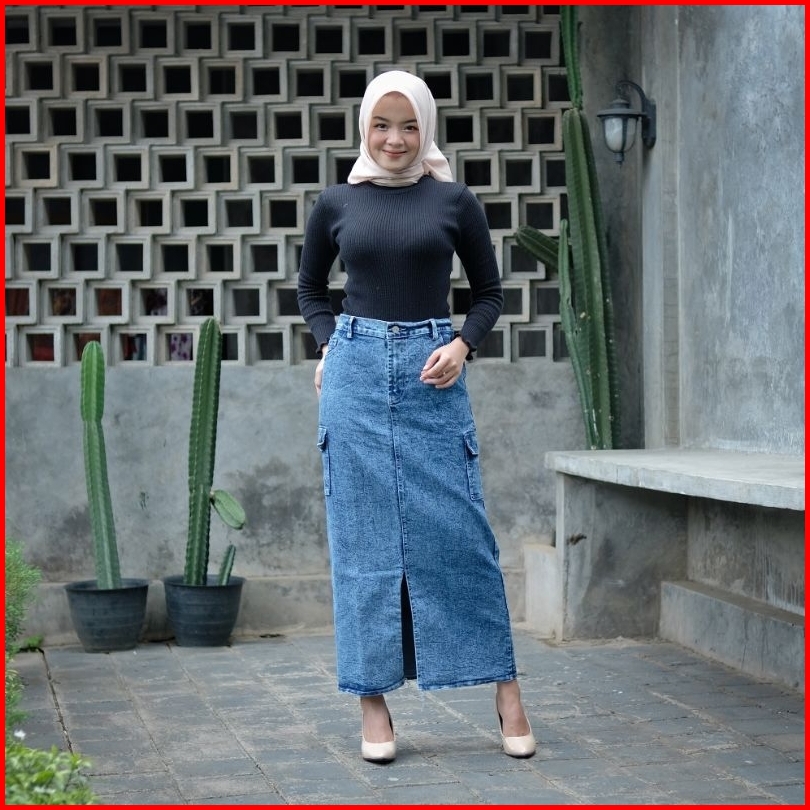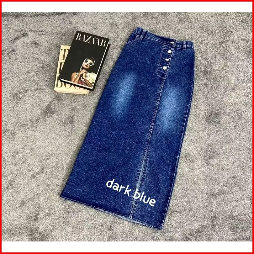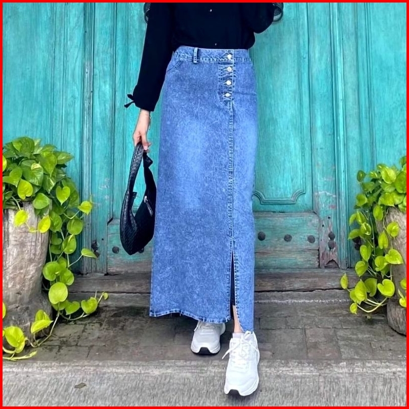 Rok Rebecca Haigh Waist Kancing Samping Belah Depan Rok Jeans Denim High Quality Rok Panjang Terbaru
