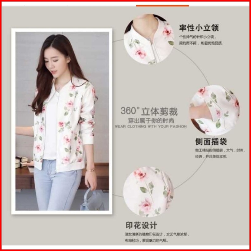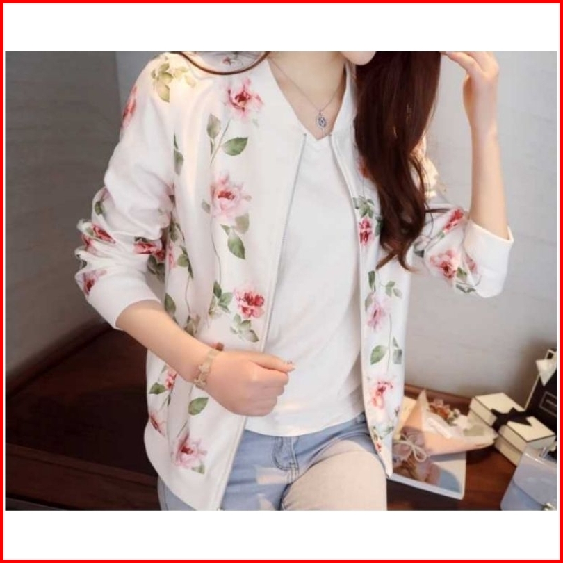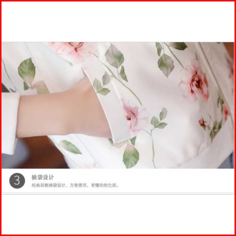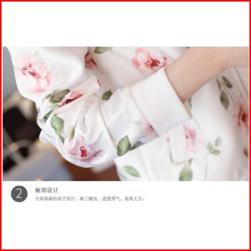 Switer Wanita Pink Rose Pattern Import Jaket Longgar Mantel Lengan Panjang Atasan Wanita Motif Mawar