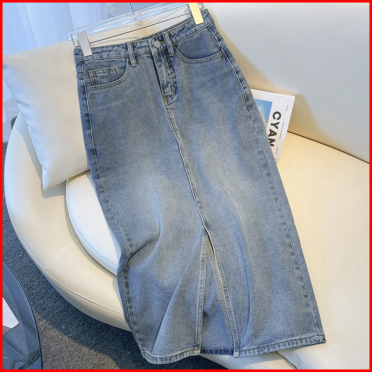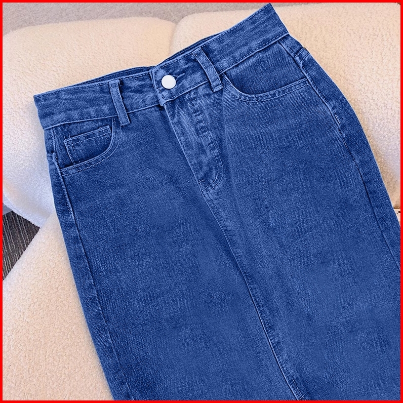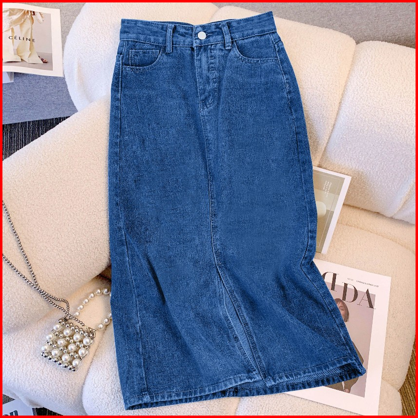 Boll.idrok Jeans Jumbo Rok Korean Style Skirt Denim Midi Wanita A Line Highwaist Rok Jeans Panjang Jumbo Rok Jeans Belah