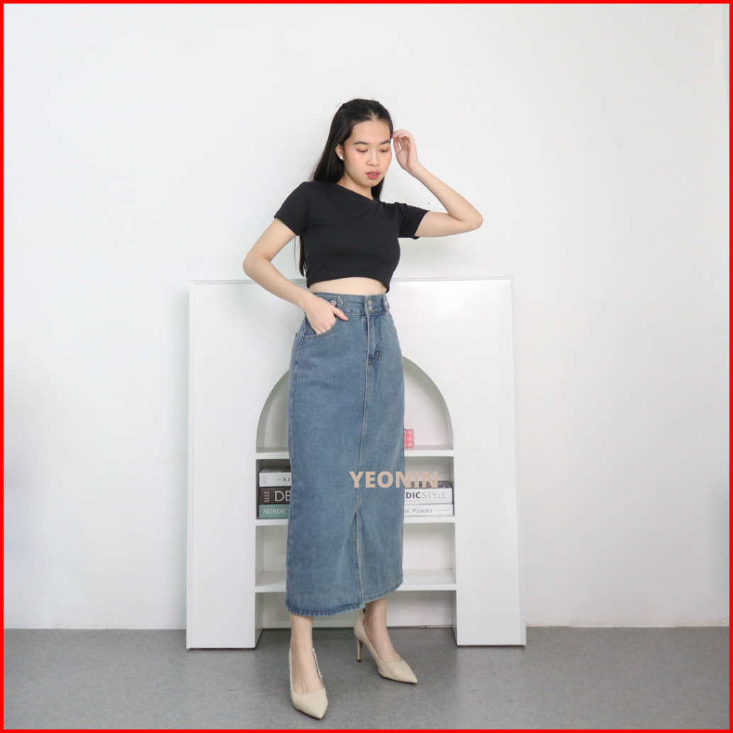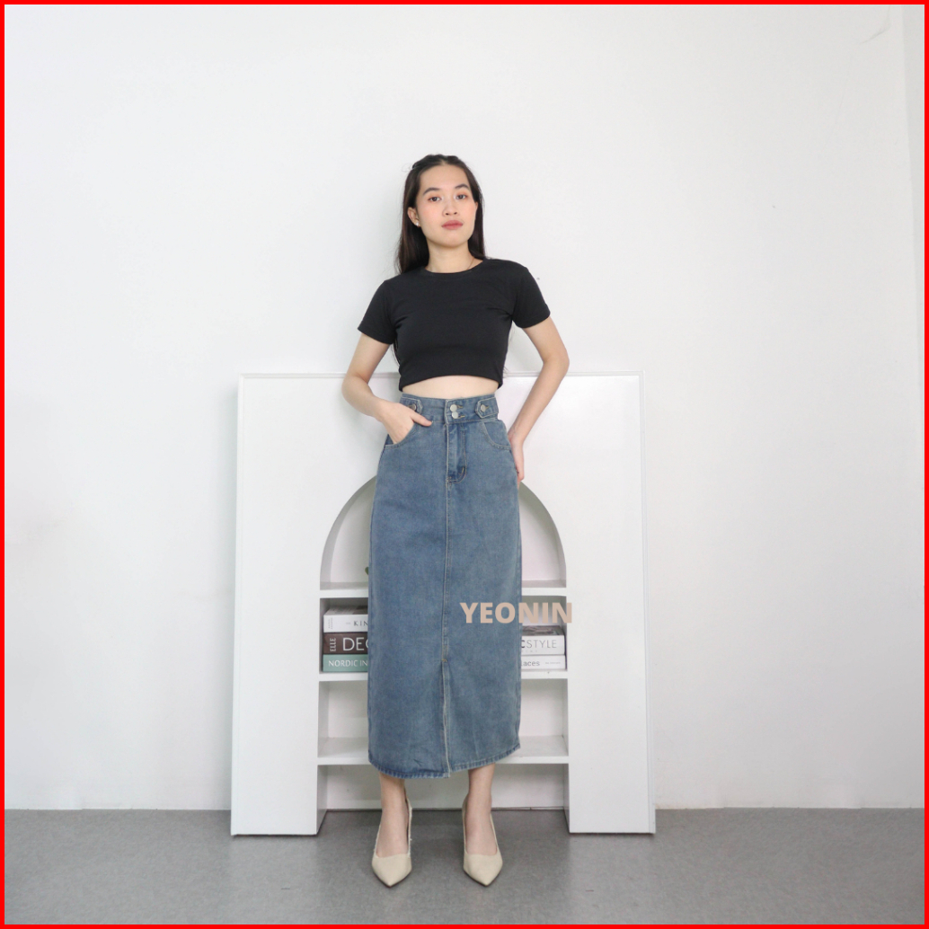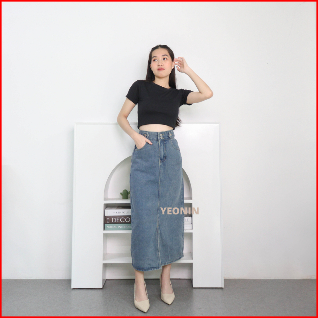 Yeonin.id Midi Skirt Rok Jeans Wanita High Waist Rok Korea Jeans X92