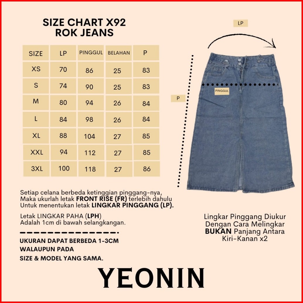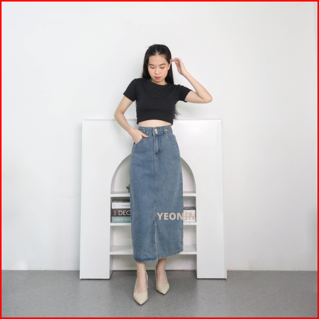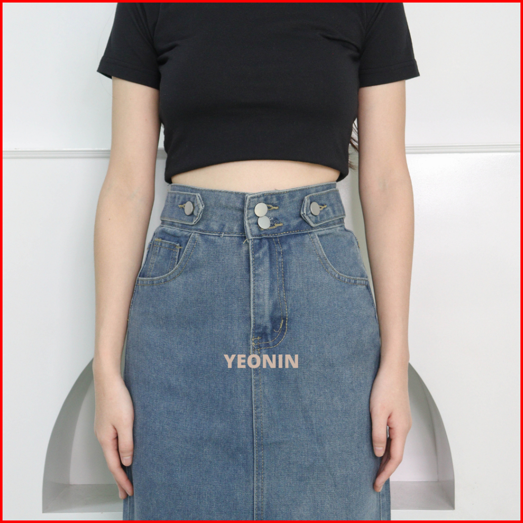 Yeonin.id Midi Skirt Rok Jeans Wanita High Waist Rok Korea Jeans X92