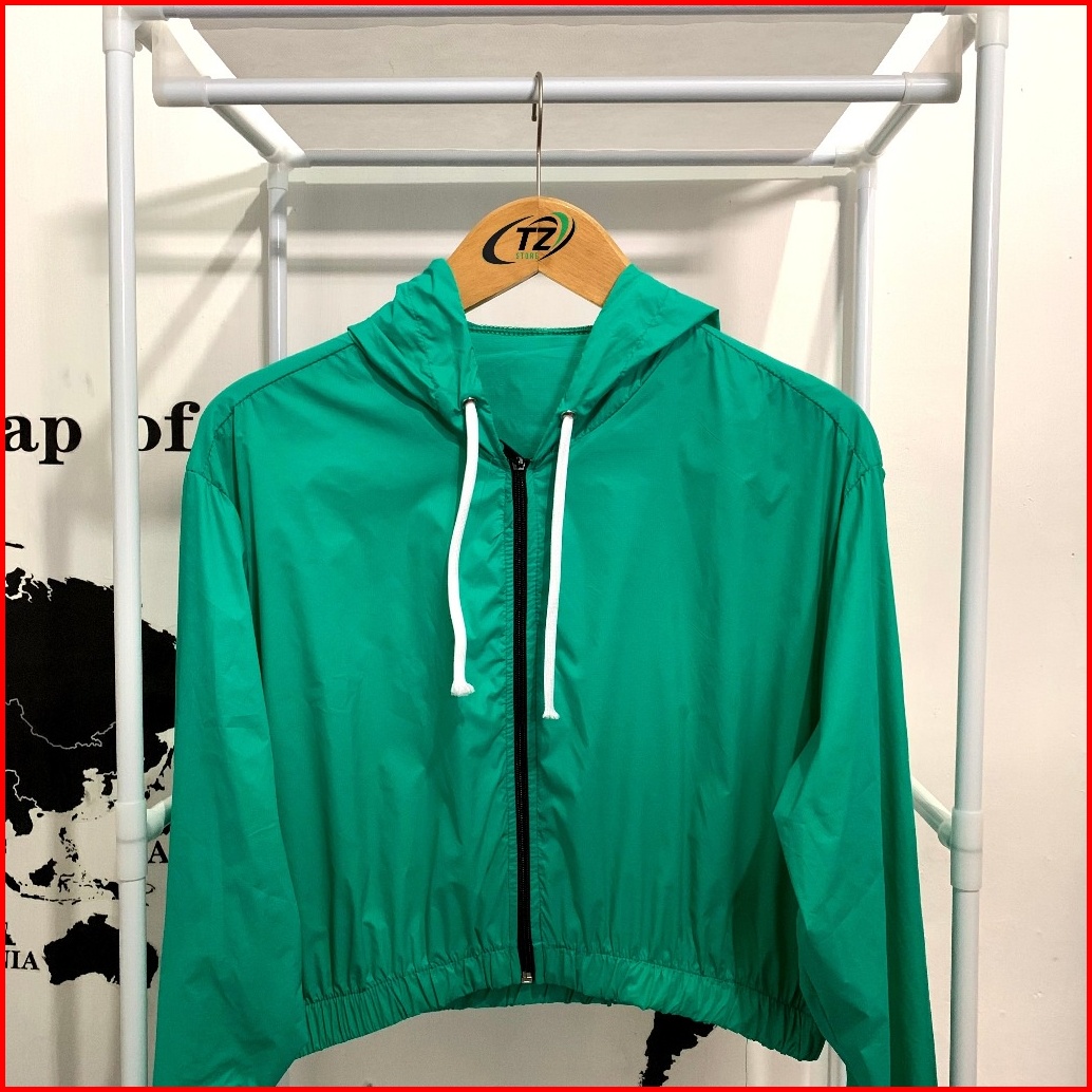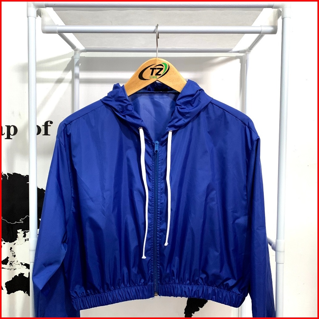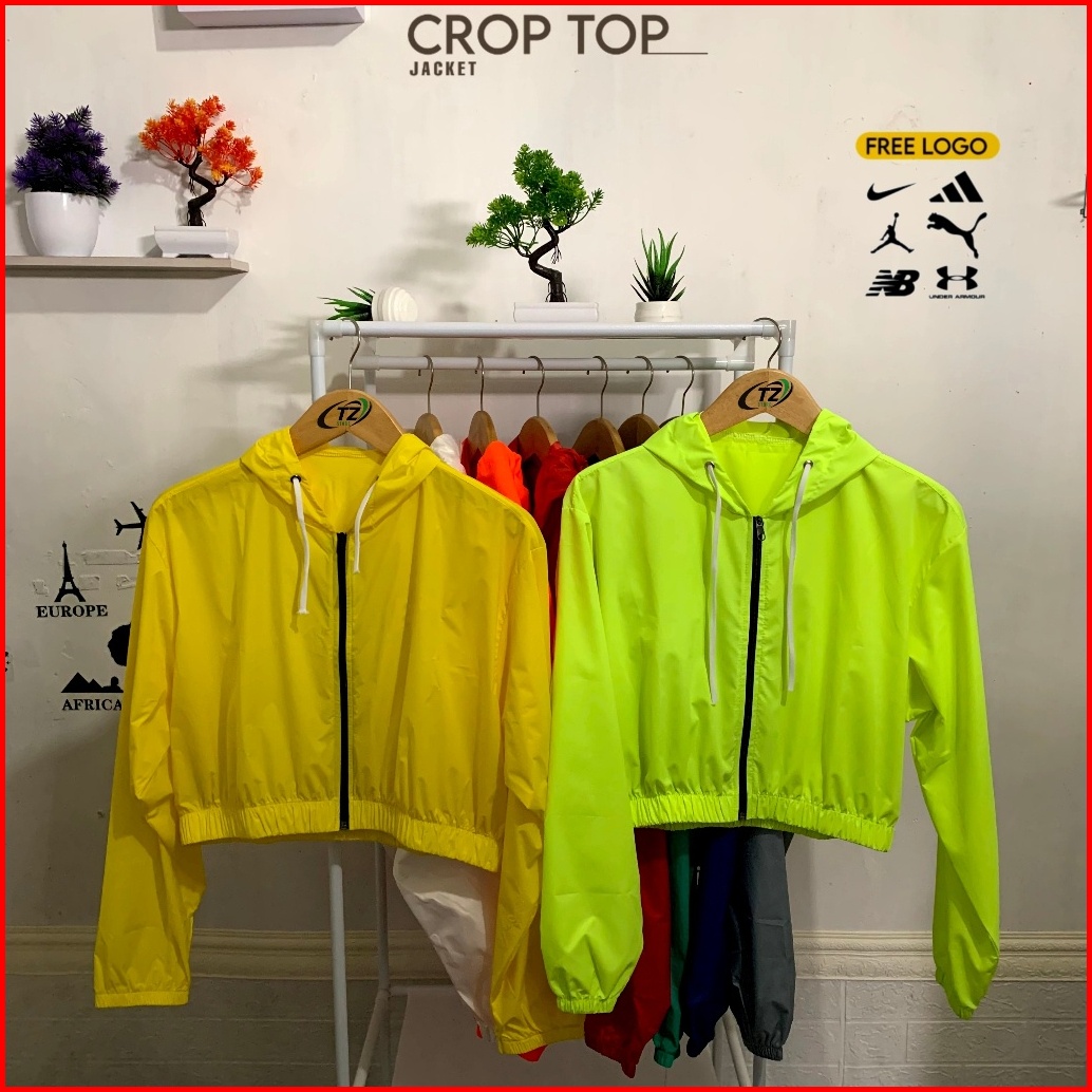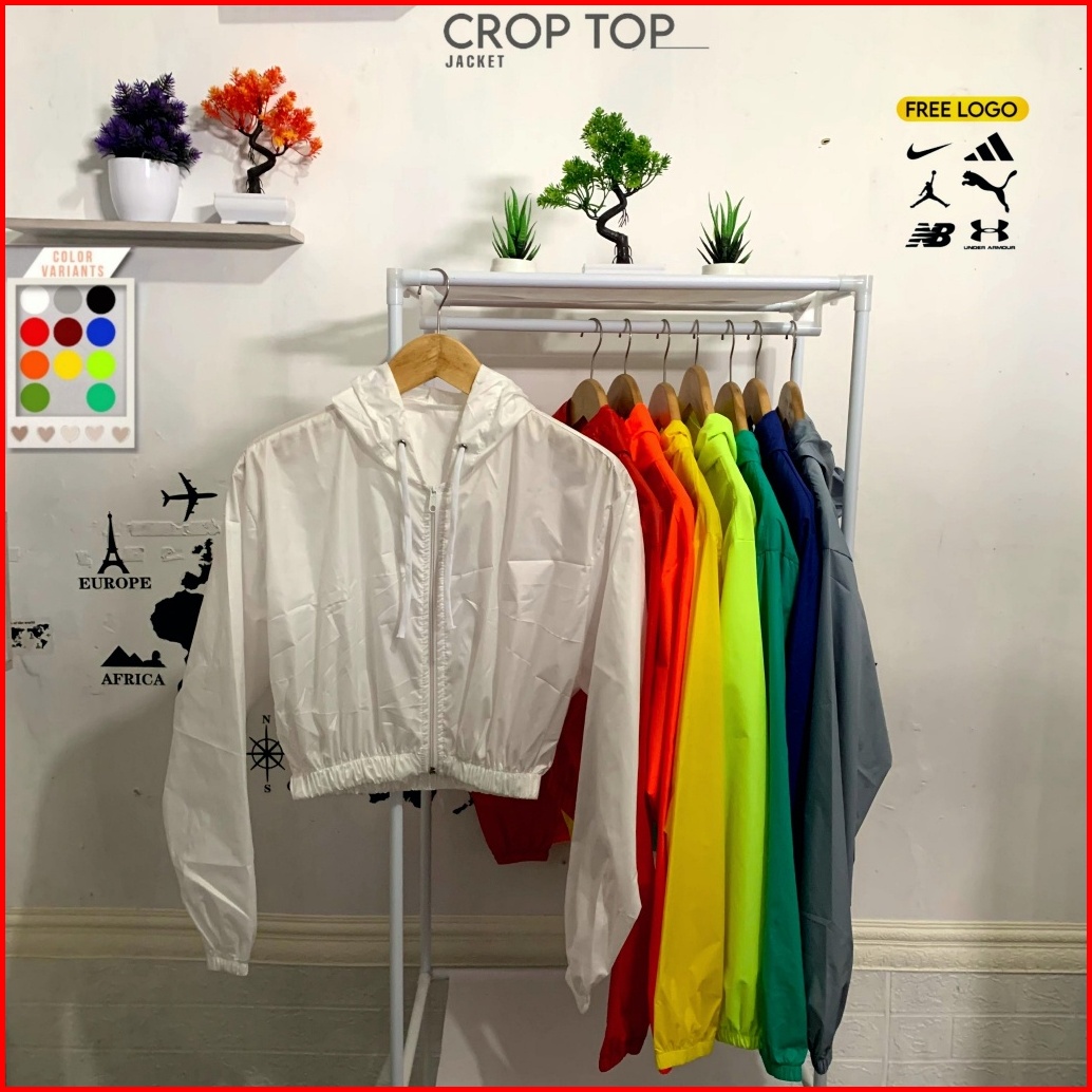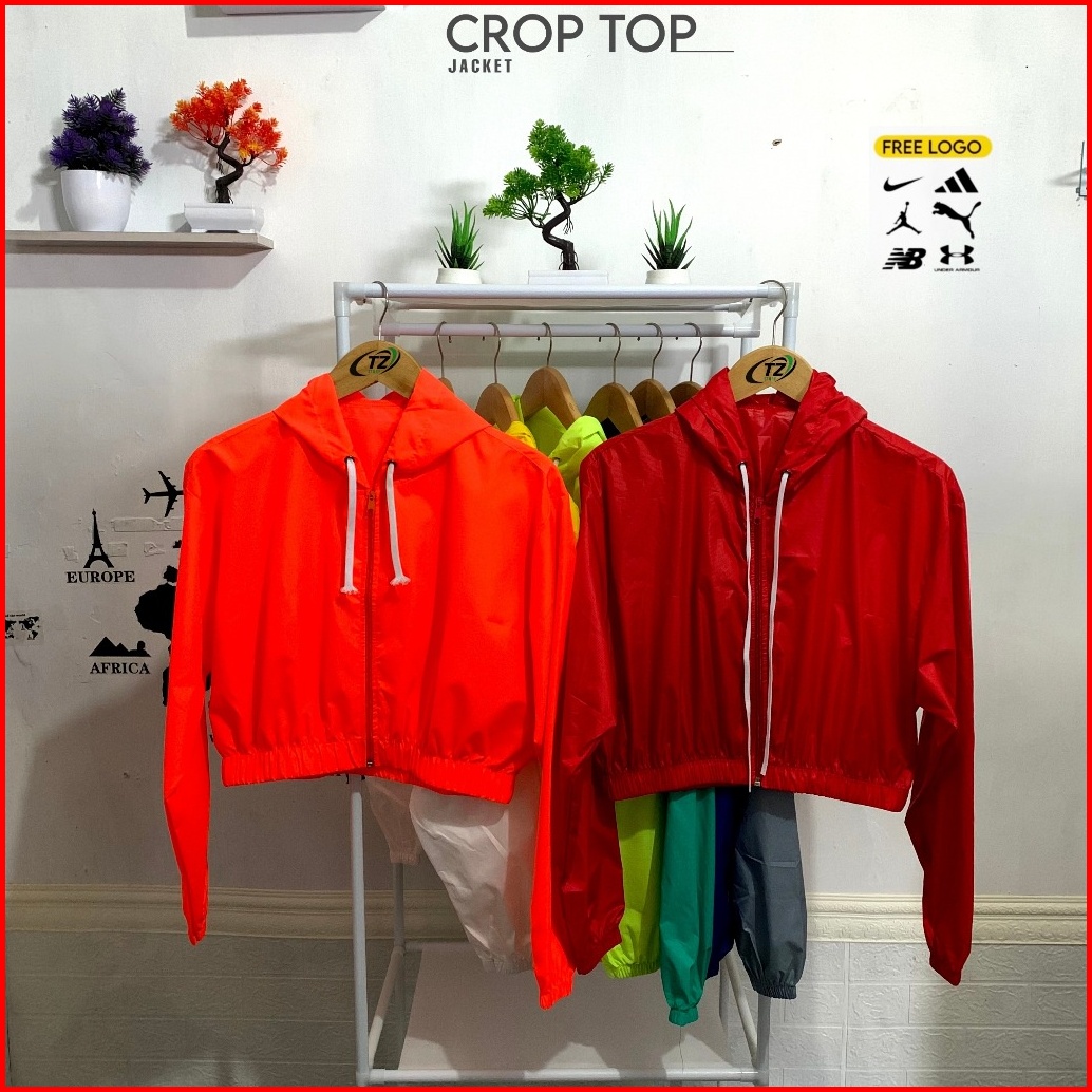 Jaket Crop Wanita Parasut Zipper Korean Style Waterproof Anti Uv Jaket Running Jogging Gym Senam Pembakar Lemak