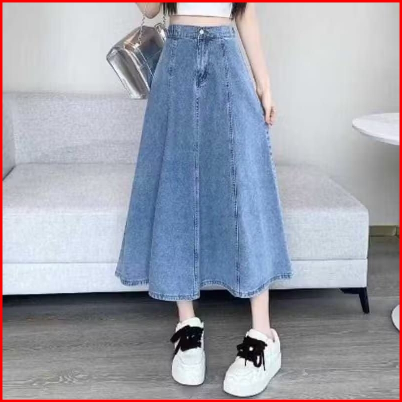 Jisso Rok Jeans Mayung Premium Wanita A-line 7 8 Model Payung Pinggang Karet Rok Wanita Highwaist Skirt Denim Terbaru